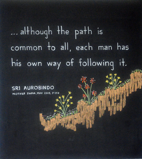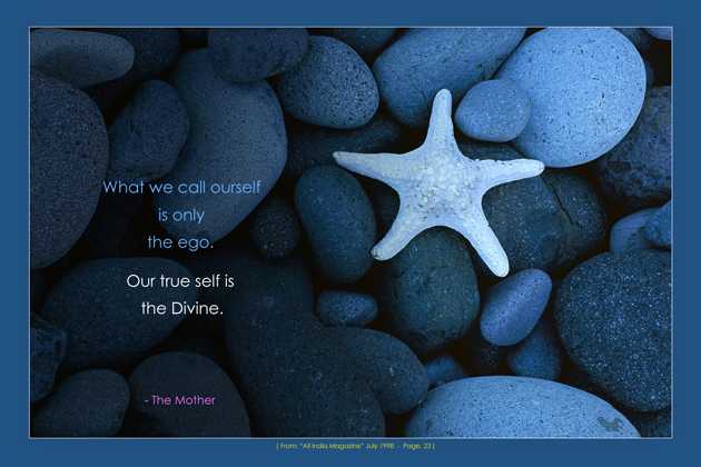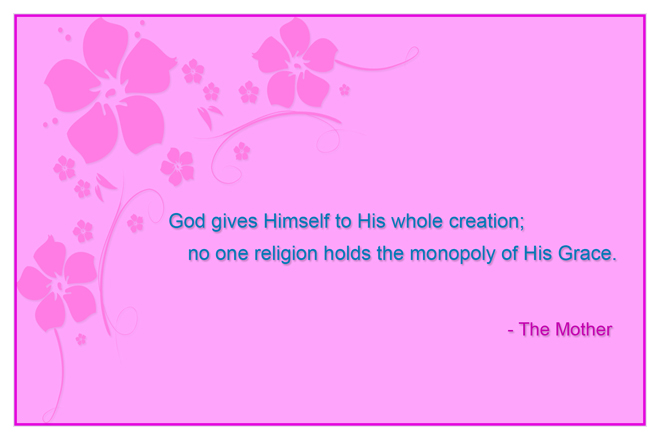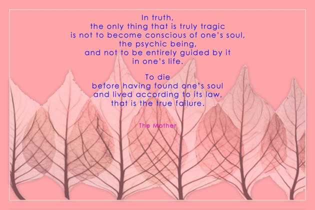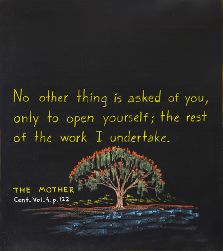 The first word represents: the supreme invocation the invocation to the Supreme. The second word represents: total self-giving; perfect surrender. The third word represents: the aspiration, what the manifestation must become—Divine.