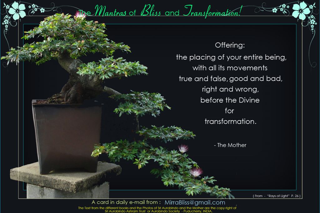 All that is conscious within me belongs unreservedly to Thee, and gradually I shall strive always harder to conquer the subconscient, the yet dark bedrock.