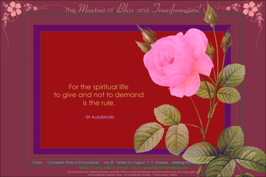 In the night as in the day be always with me. In sleep as in waking let me feel in me always the reality of your presence. Let it sustain and make to grow in me Truth, consciousness and bliss constantly and at all times.