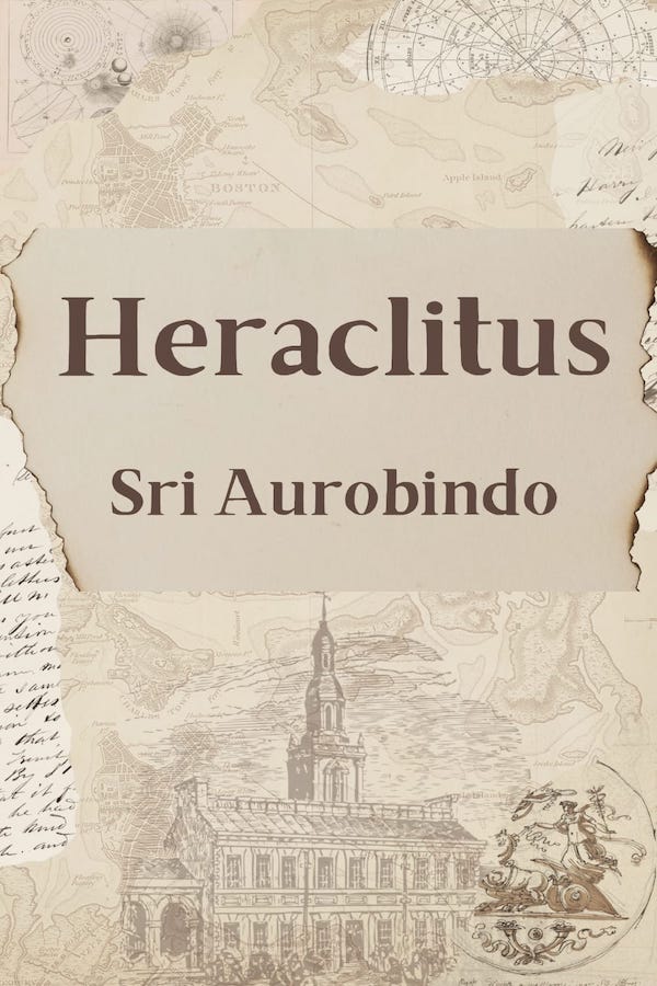 The chapters of this work first appeared in the Arya between December 1916 and June 1917. It began as an examination of Herakleitos by R. D. Ranade (Poona: Aryabhushana Press, 1916). Sri Aurobindo's Heraclitus was published as a book in 1941 (lightly revised), 1947 and subsequently.