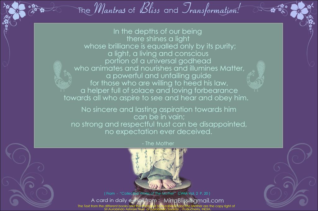 O my beloved Lord, my heart is bowed before Thee, my arms are stretched towards Thee imploring Thee to set all this being on fire with Thy sublime love that it may radiate from there on the world. My heart is wide open in my breast; my heart is open and turned towards Thee, it is open and empty that Thou mayst fill it with Thy divine Love; it is empty of all but Thee and Thy presence fills it through and through and yet leaves it empty, for it can contain also all the infinite variety of the manifested world....