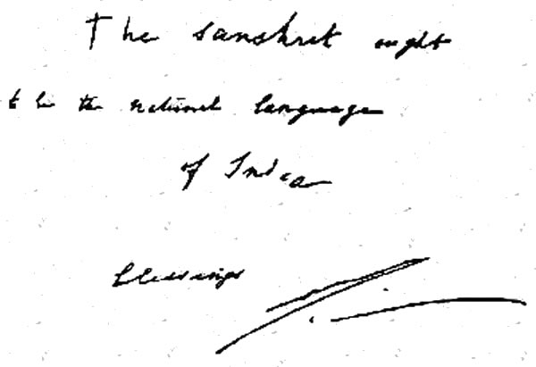 ...The ideal would be, in a few years, to have a rejuvenated Sanskrit as the representative language of India, that is, a Sanskrit spoken in such a way that — Sanskrit is behind all the languages of India and it should be that...