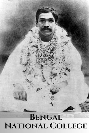 At first Sri Aurobindo took part in Congress politics only from behind the scenes as he had not yet decided to leave the Baroda service; but he took long leave without pay in which, besides carrying on personally the secret revolutionary work, he attended the Barisal Conference broken up by the police and toured East Bengal along with Bepin Pal and associated himself closely with the forward group in the Congress. It was during this period that he joined Bepin Pal in the editing of the Bande Mataram, founded the new political party in Bengal and attended the Congress session at Calcutta at which the Extremists, though still a minority, succeeded under the leadership of Tilak in imposing part of their political programme on the Congress. The founding of the Bengal National College gave him the opportunity he needed and enabled him to resign his position in the Baroda service and join the college as its Principal. Subodh Mullick, one of Sri Aurobindo's collaborators in his secret action and afterwards also in Congress politics, in whose house he usually lived when he was in Calcutta, had given a lakh of rupees for this foundation and had stipulated that Sri Aurobindo should be given a post of professor in the college with a salary of Rs. 150; so he was now free to give his whole time to the service of the country.