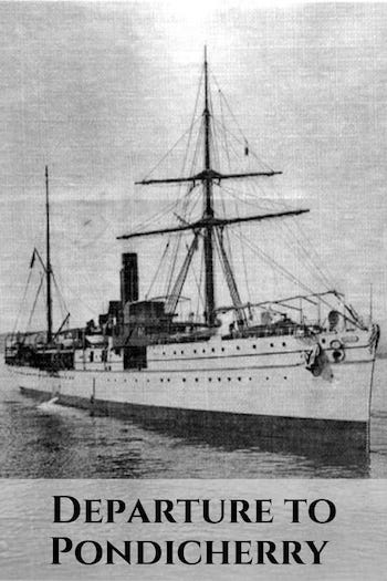 Sri Aurobindo one night at the Karmayogin office received information of the Government's intention to search the office and arrest him. While considering what should be his attitude, he received a sudden command from above to go to Chandernagore in French India. He obeyed the command at once, for it was now his rule to move only as he was moved by the divine guidance and never to resist and depart from it; he did not stay to consult with anyone but in ten minutes was at the river ghat and in a boat plying on the Ganges, in a few hours he was at Chandernagore where he went into secret residence. He sent a message to Sister Nivedita asking her to take up the editing of the Karmayogin in his absence. This was the end of his active connection with his two journals. At Chandernagore he plunged entirely into solitary meditation and ceased all other activity. Then there came to him a call to proceed to Pondicherry. A boat manned by some young revolutionaries of Uttarpara took him to Calcutta; there he boarded the Dupleix and reached Pondicherry on April 4, 1910.