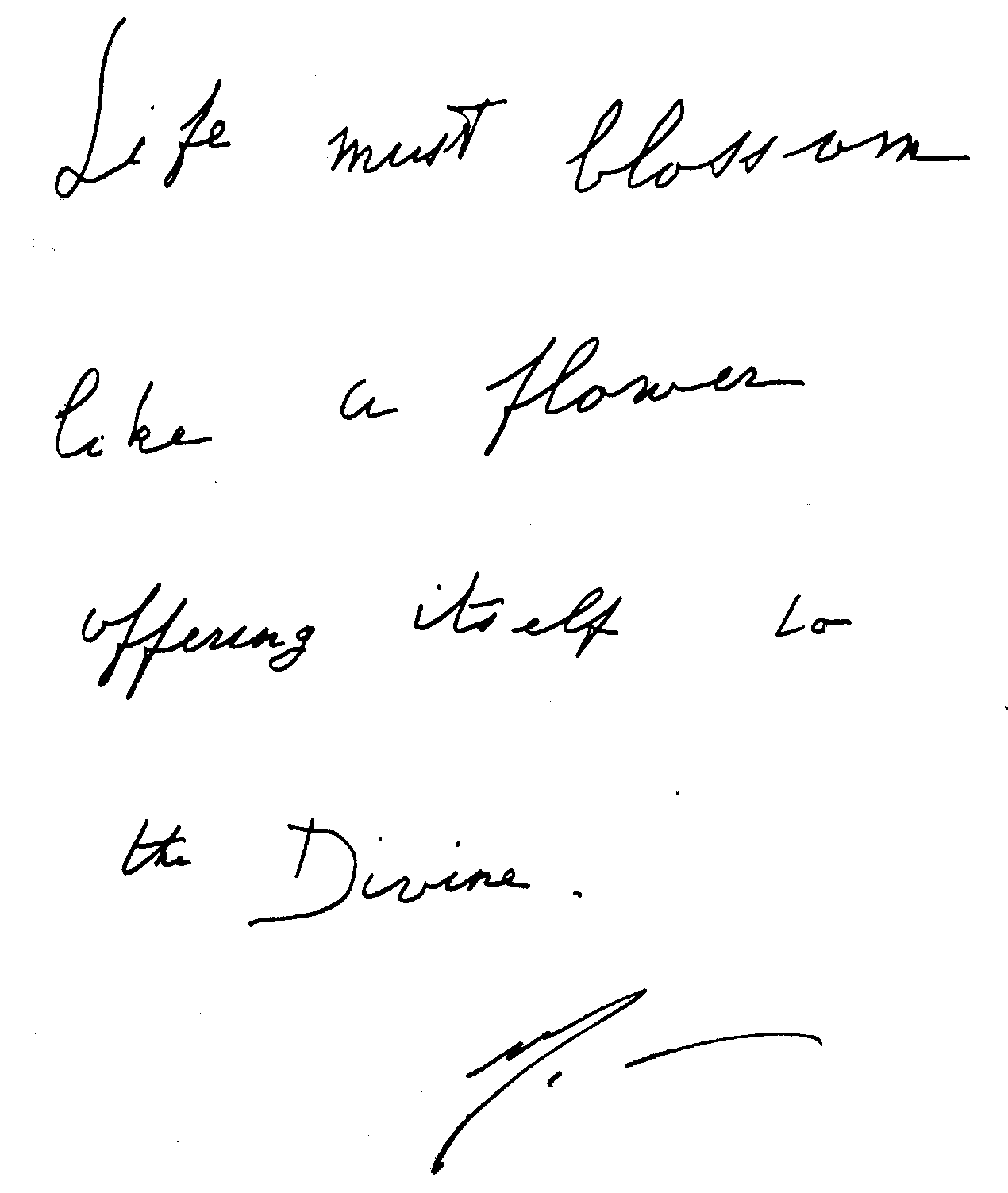 Sri Aurobindo once remarked: "The plants are very psychic but they can express it only by silence and beauty." Here, the Mother has made an eloquent and potent expression of this beauty and silence.