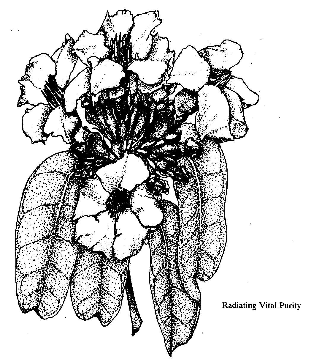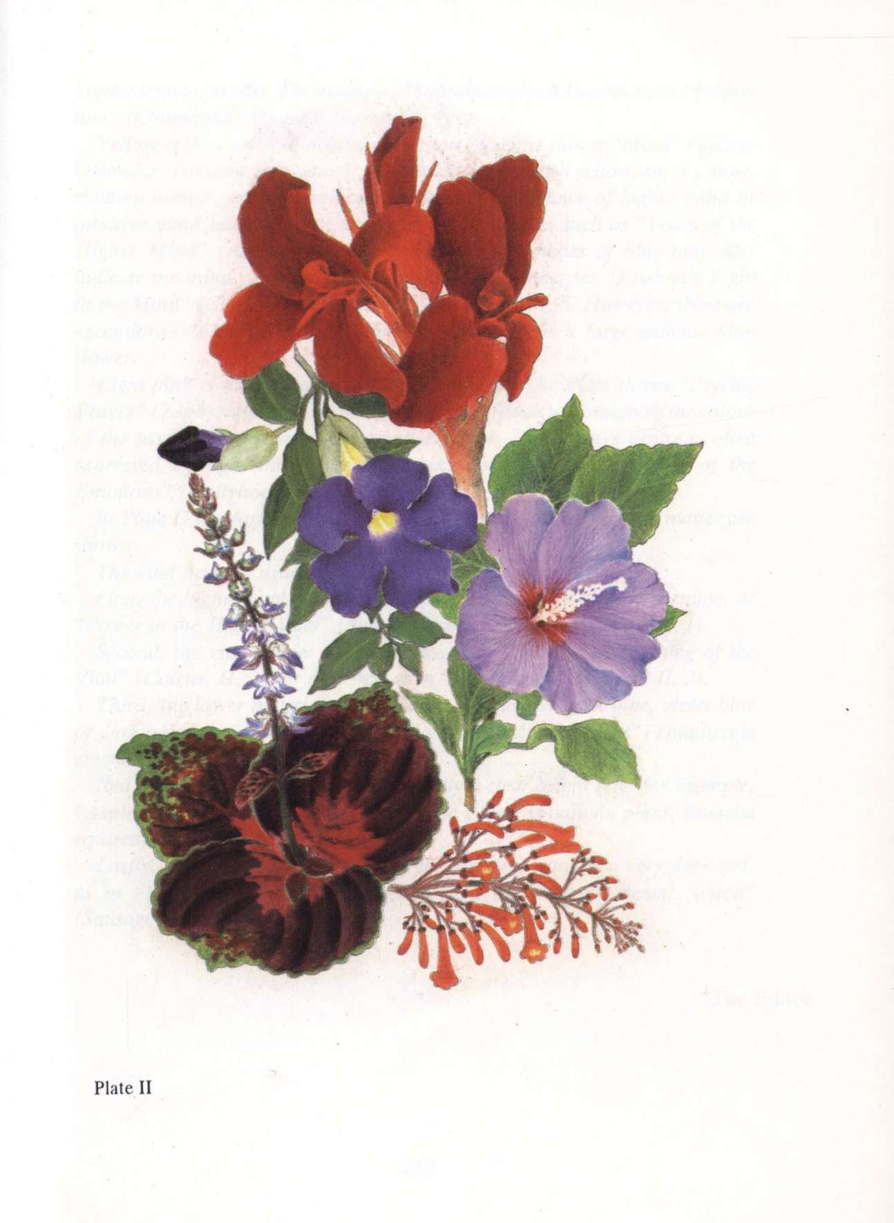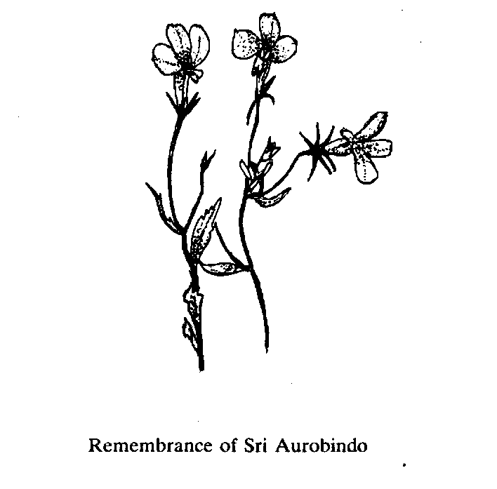 A word of explanation regarding the order of botanical names is perhaps needed, since a fairly flexible scheme has been followed. For example, the flowers in a given genus are not always listed strictly in the alphabetical order of their specific botanical names. Often, the first flower listed is the one the Mother gave as the general spiritual significance for the genus. This is then followed by flowers arranged according to the parts and planes of the being as indicated by their spiritual names.