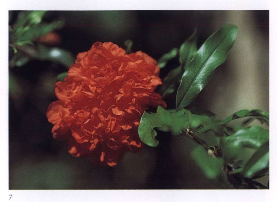 7 Divine Love A flower that is said to blossom even in the desert. Punica granatum. Orange red, double