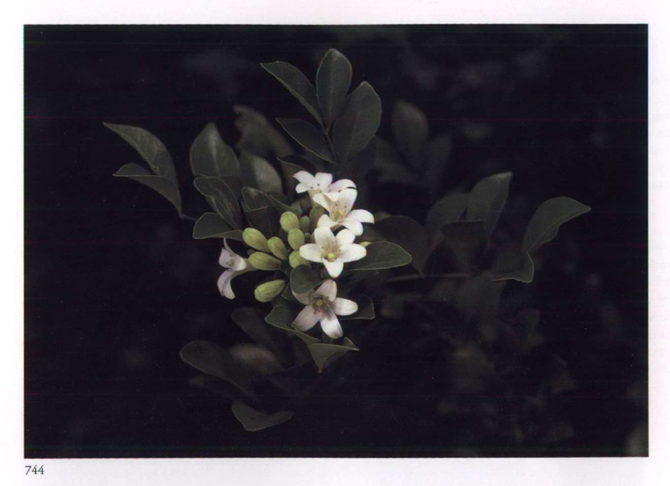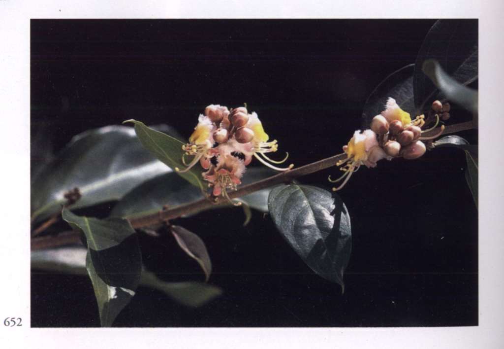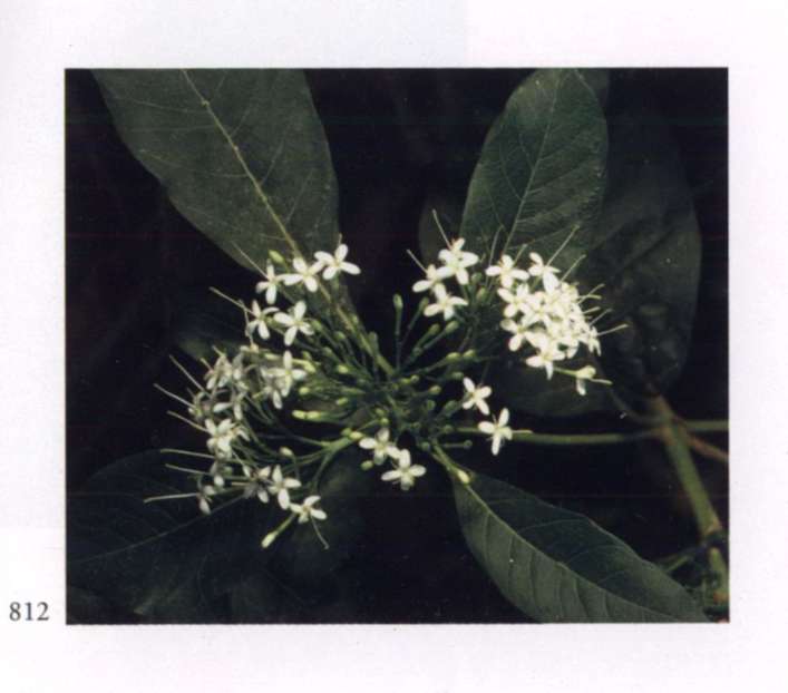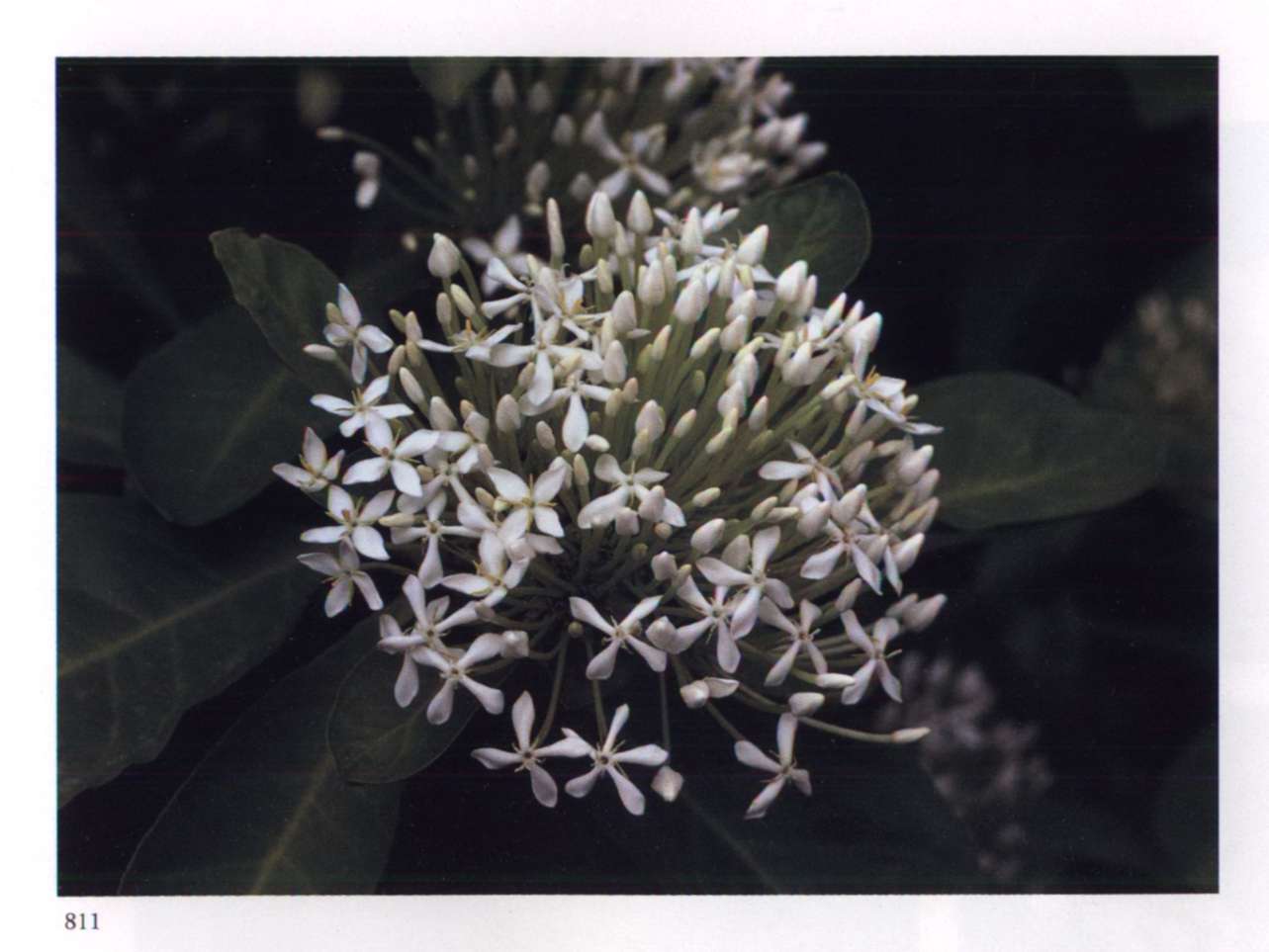 860 Rising star Let us hope it is the right one. Aganosma roxburghii Apocynaceae Small fragrant white salverform flower with five overlapping petal-like lobes forming a pinwheel and a narrow yellow tube arising from a prominent star-shaped calyx; borne in large rounded terminal corymbs. A moderately large vine with red-veined leaves.