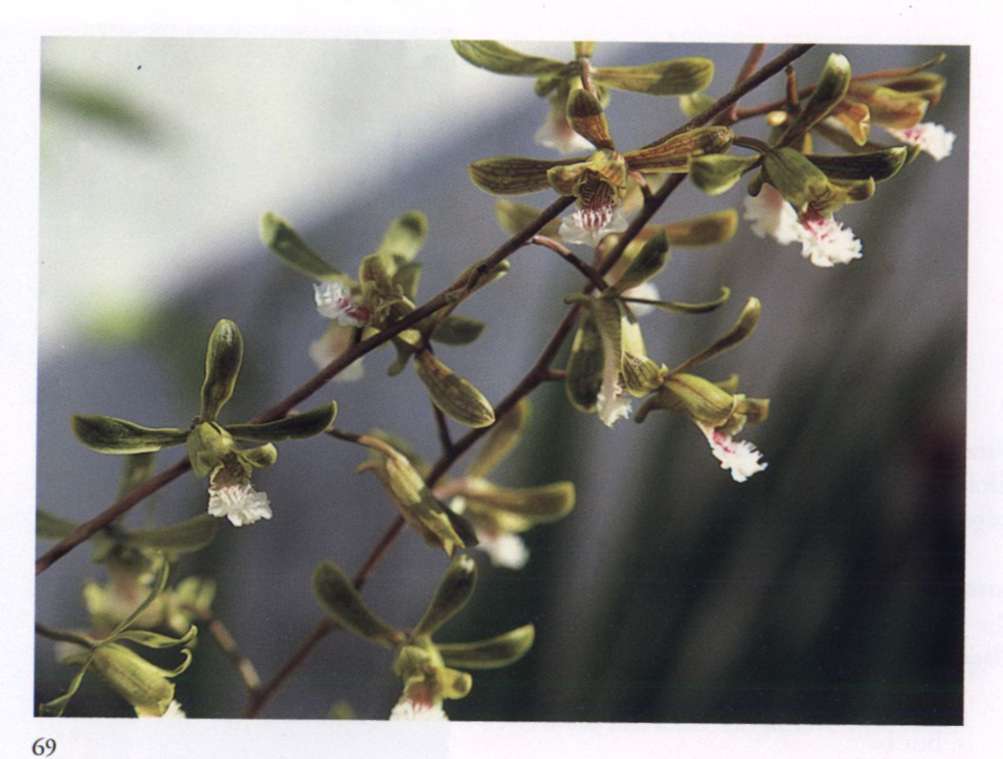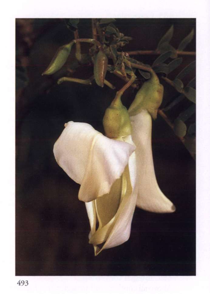 869 The psychic governs Matter The psychic influence compels the physical to turn towards the Divine. Erythrina variegata L. 'Alba' Leguminosae (subfamily Papilionoideae) Coral tree Dense terminal racemes of medium-sized white flowers veined pink with one prominent curving partly folded petal and long exserted stamens. A tall narrow tree with greenish bark and narrow vertical yellow stripes.