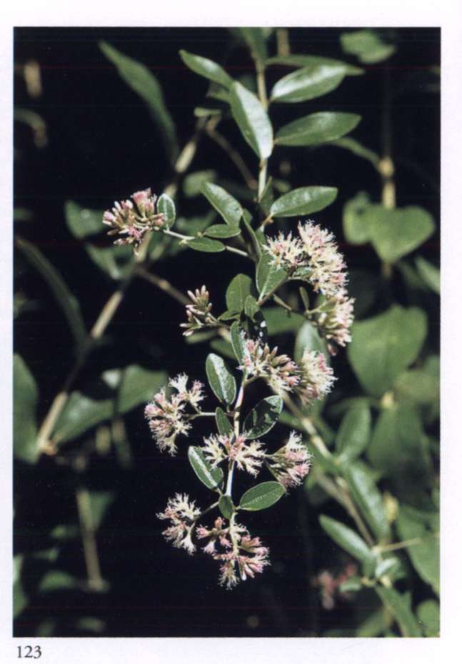 868 Psychic awakening in Matter Matter opens itself to spiritual life. Dodonaea viscosa (L.) Jacq. Sapindaceae Native hops Small green papery three-winged seed-capsules tinged with light maroon, turning brown when ripe; borne in clusters among the leaves. A medium-sized shrub or slender tree with ovate-lanceolate leaves.