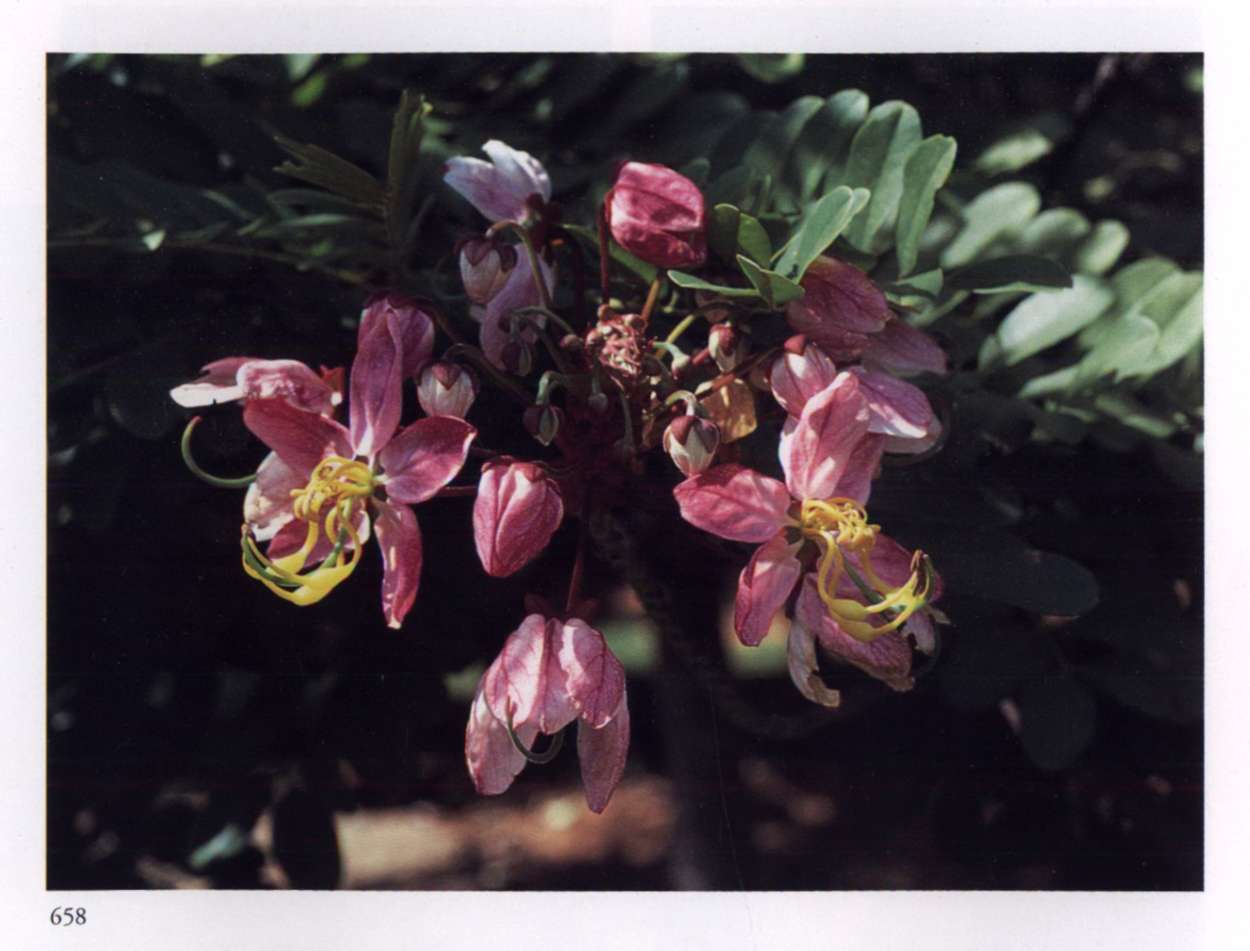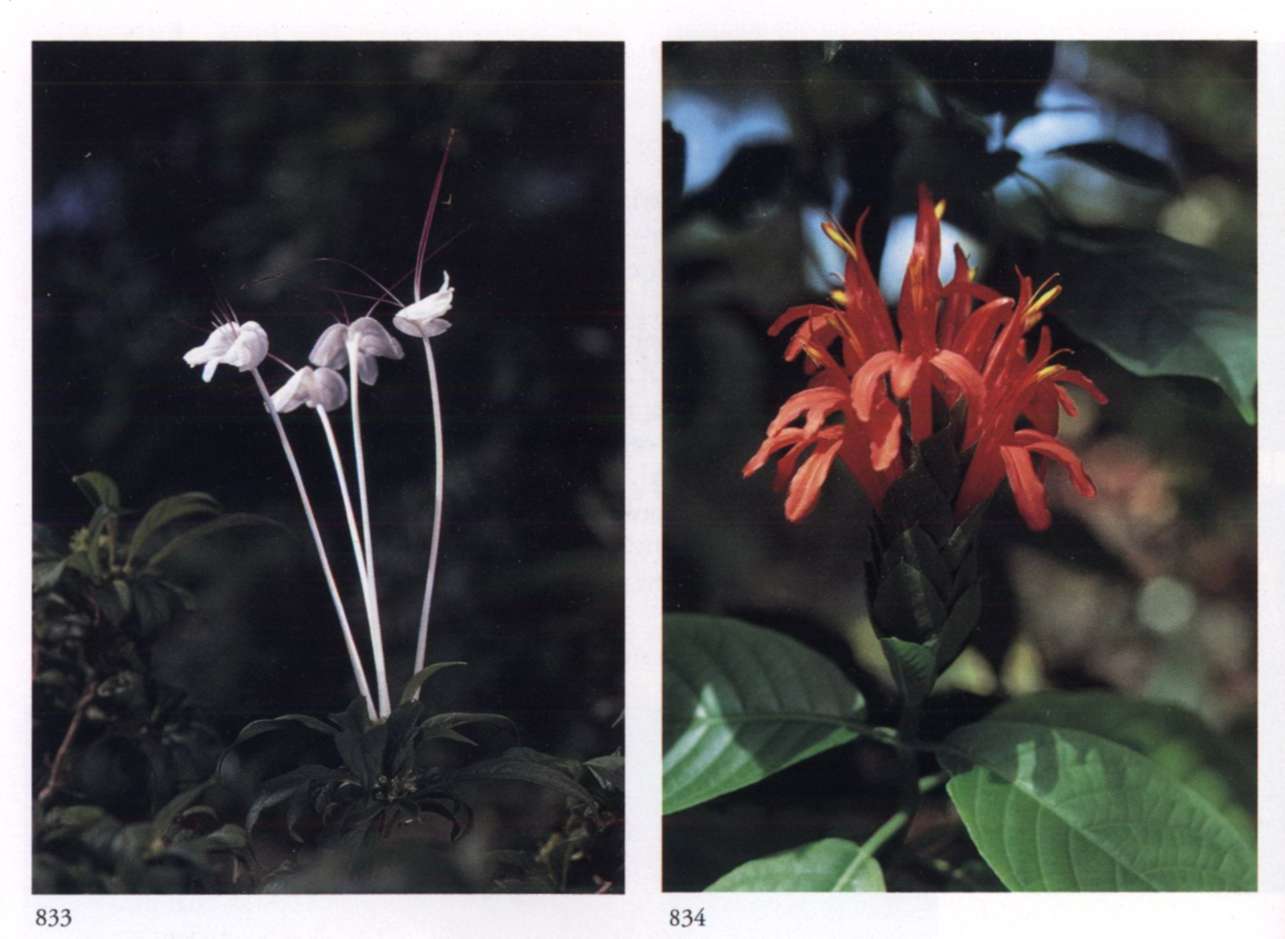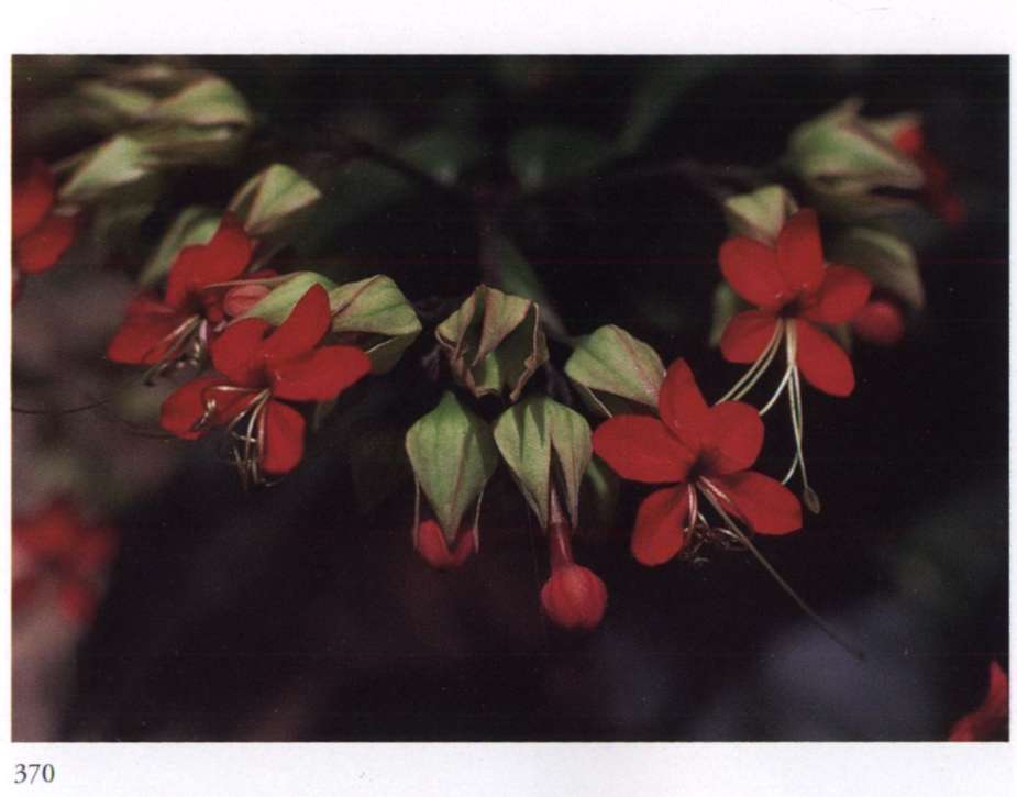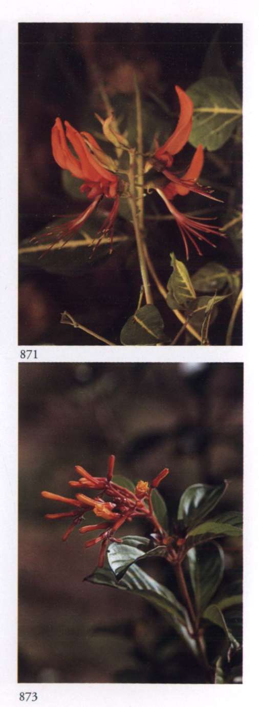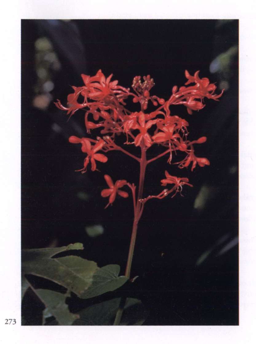 875 Splendour and opulence in material life Can become widespread only through transformation. Quassia amara L. Simaroubaceae Bitterwood Medium-sized glowing scarlet tubular flower with yellow anthers that protrude beyond the petals; borne in racemes. A shrub or small tree with uniquely shaped leaves; new leaves are glossy copper red.