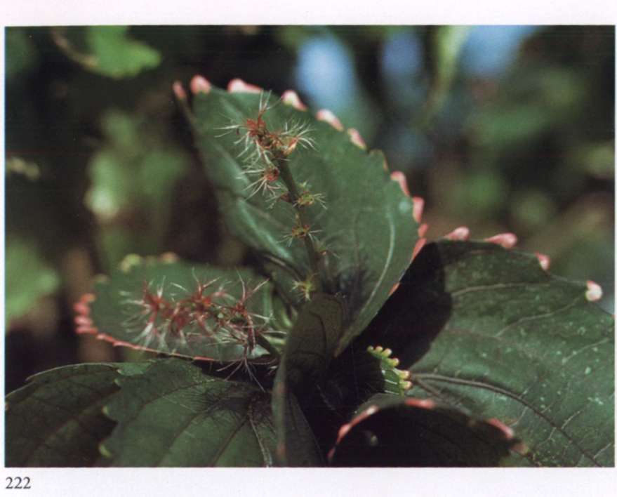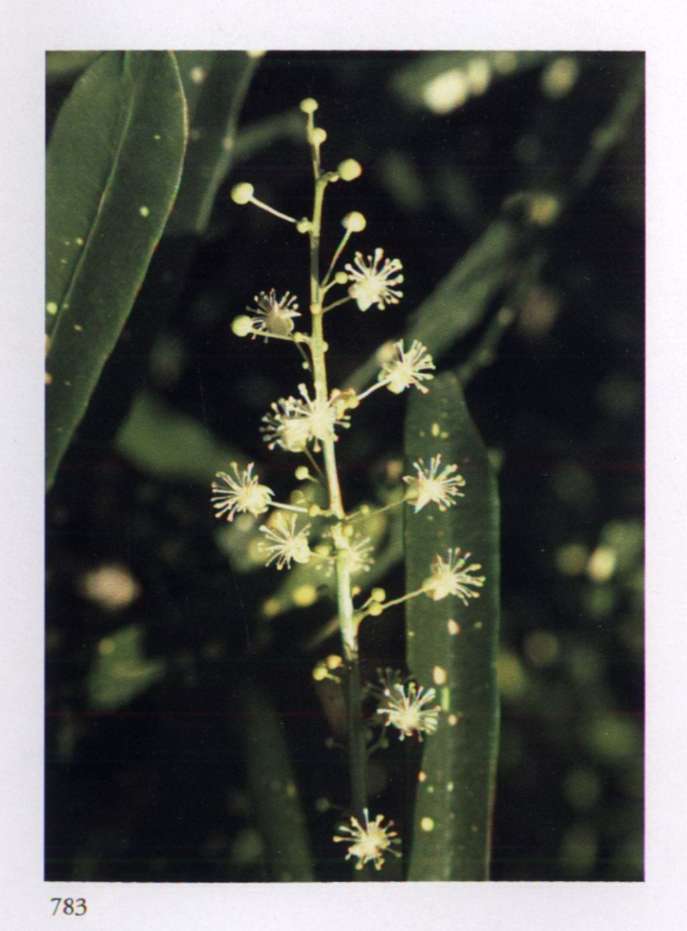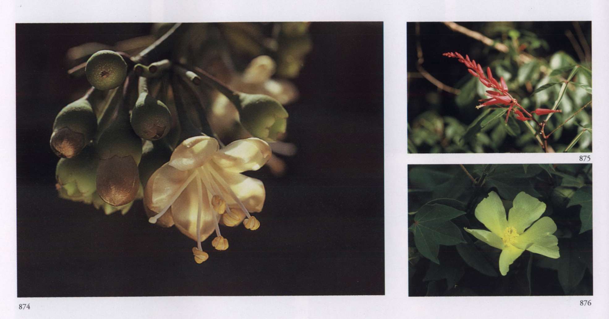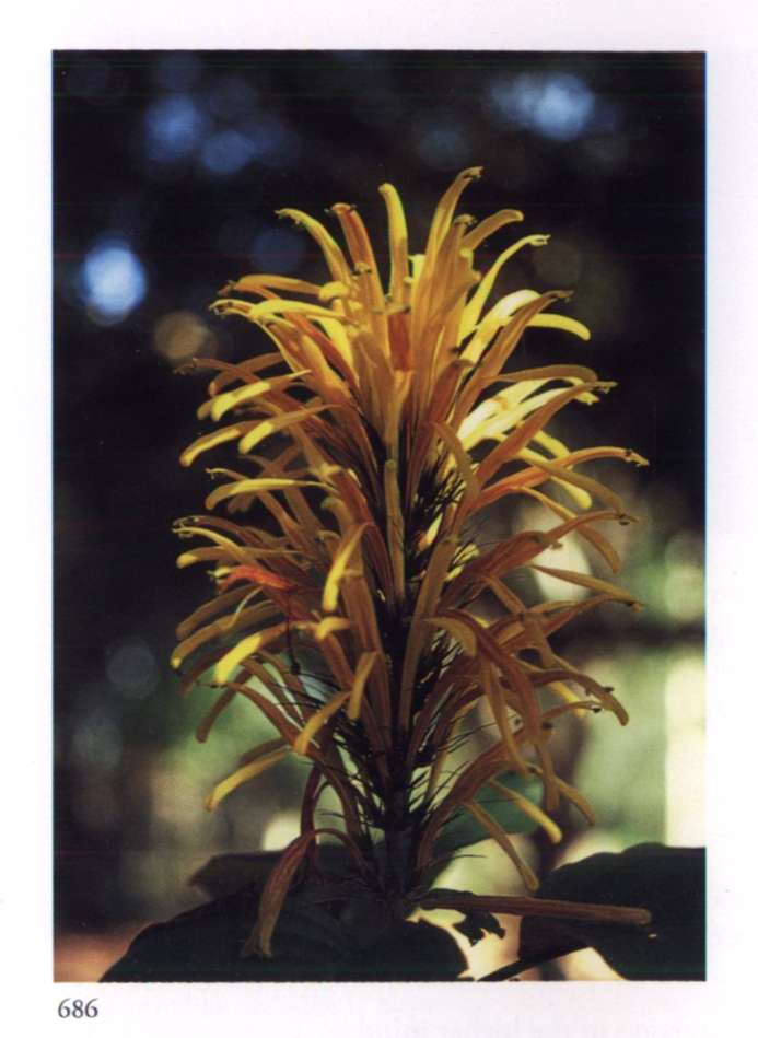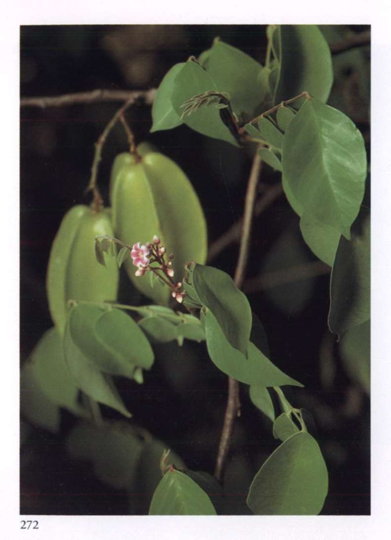 875 Splendour and opulence in material life Can become widespread only through transformation. Quassia amara L. Simaroubaceae Bitterwood Medium-sized glowing scarlet tubular flower with yellow anthers that protrude beyond the petals; borne in racemes. A shrub or small tree with uniquely shaped leaves; new leaves are glossy copper red.