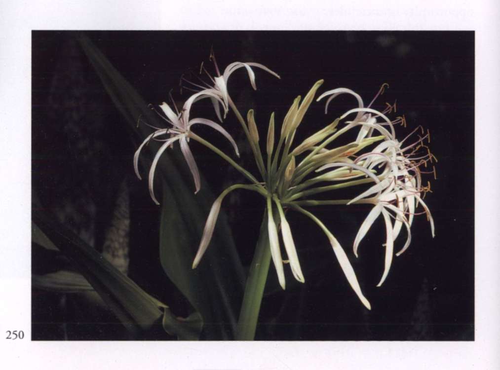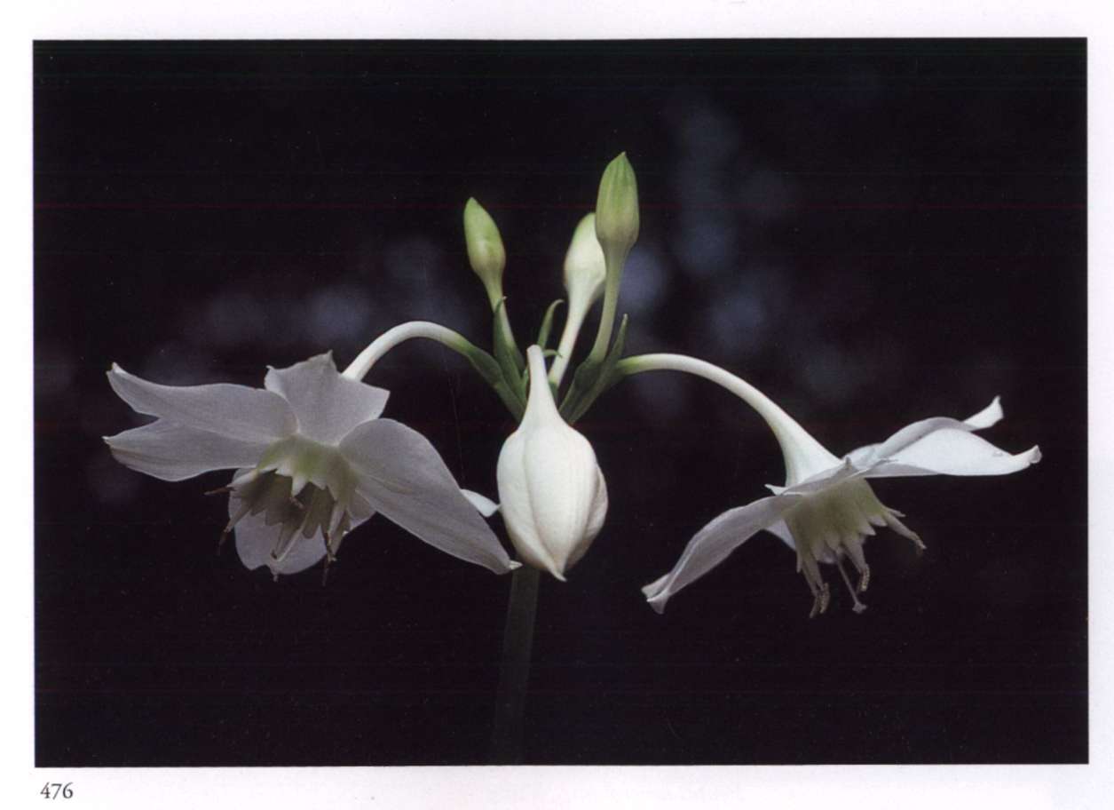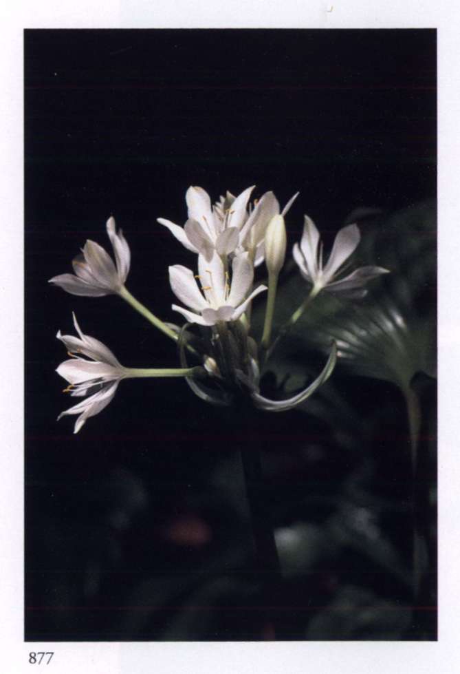 877 Silver Manifold and white, it aspires for spirituality. Proiphys amboinensis (L.) Herb. [Eurycles sylvestris Salisb. ex Schult. & Schult. f.] Amaryllidaceae Brisbane lily Medium-sized glistening white salverform flowers with a long narrow light green corolla tube that divides abruptly into six narrow pointed separated segments; borne in many-flowered umbels. A bulbous plant with numerous large rounded leaves.