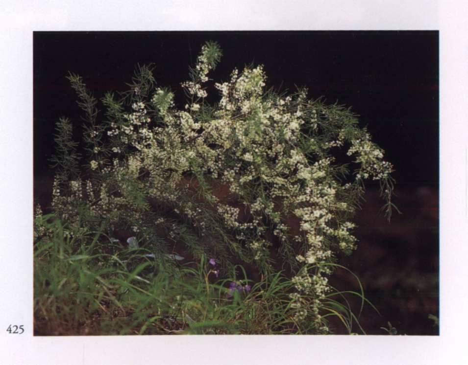 880 Ether Charming and ethereal, it is bound to please. Porana paniculata Roxb. Convolvulaceae Bridal bouquet, Christ vine, Snow creeper, Snow-in-the-jungle Tiny white mildly fragrant salverform flowers borne in delicate many-flowered panicles that form large airy sprays. A rampant vine with large ovate-cordate leaves that are white-pubescent beneath. Early name: Spirit