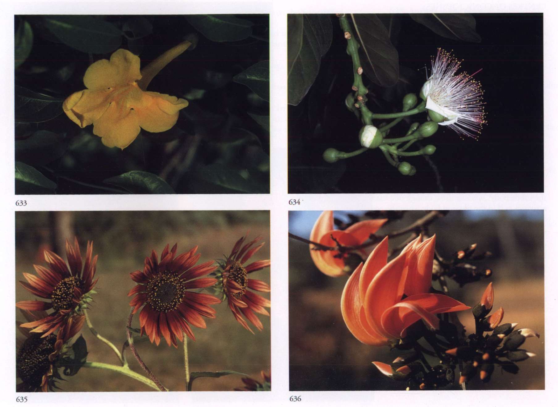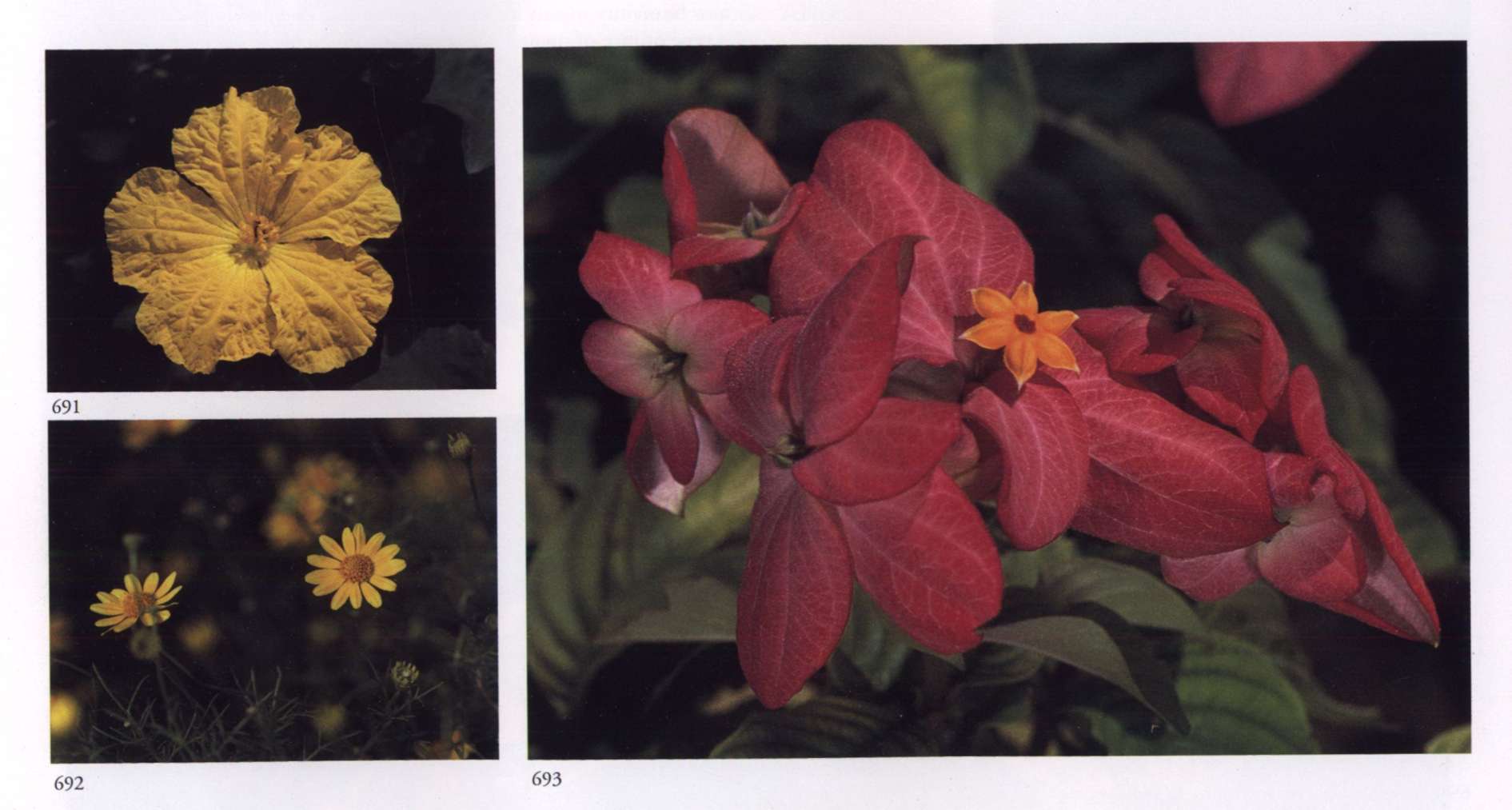 In some of the photographs, the colour of the flower differs in hue or intensity from the colour mentioned in the text of Part 1 and the description of the flower in Part 2. The difference in colour may be due to several reasons: type of film used, lighting conditions, limitations of printing, etc. Flowers photographed in strong sunlight appear lighter in hue than those photographed in subdued or indirect sunlight. While printing, it is often difficult to duplicate the exact colour of a flower, particularly when flowers of various colours appear on the same page.