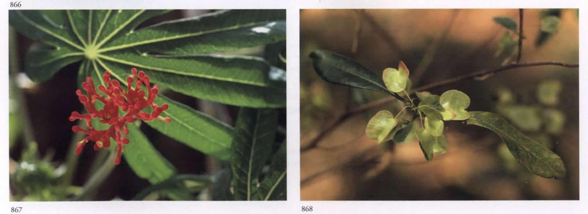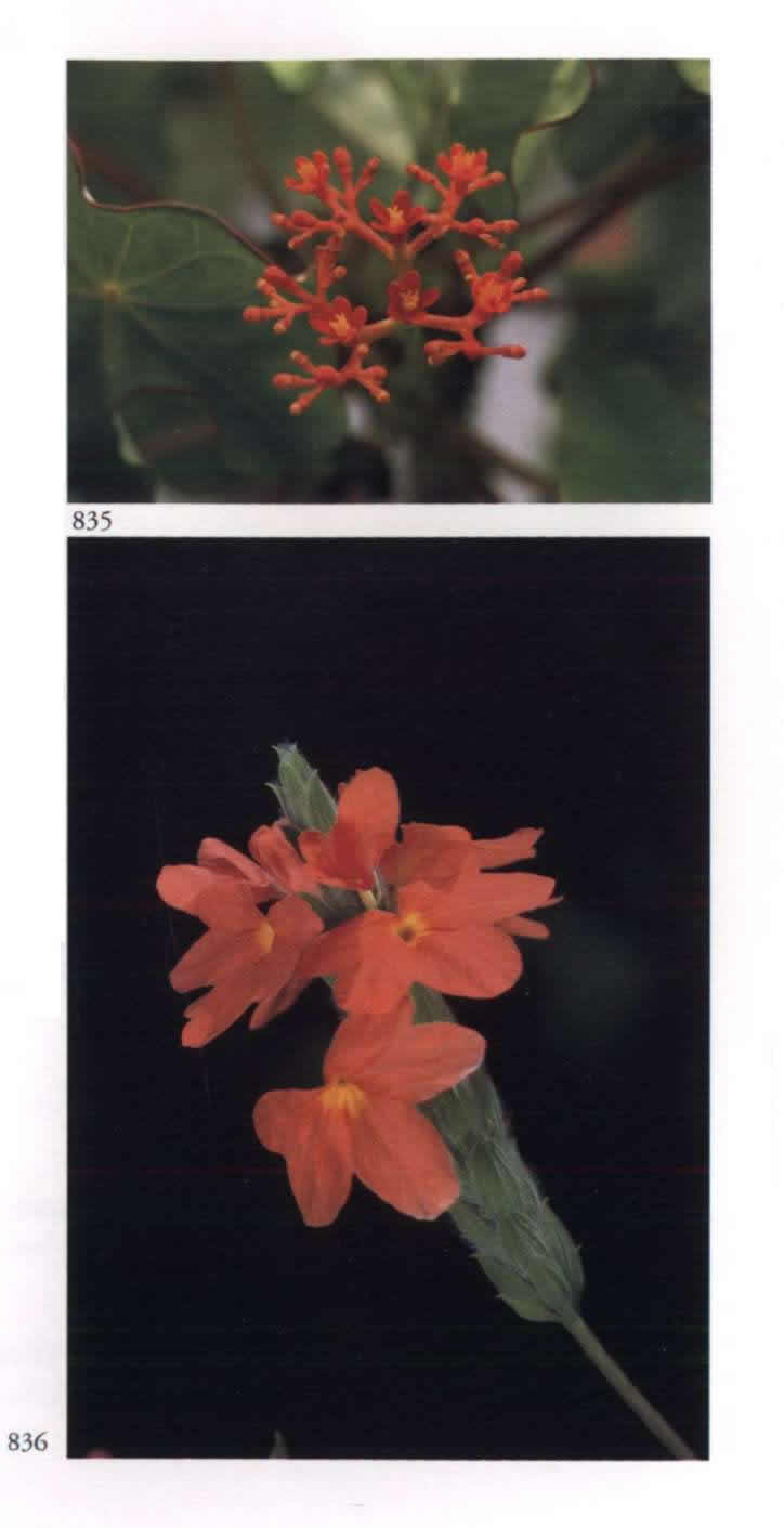 867 First appearance of the psychic in Matter A messenger of beauty. Jatropha multifida L. Euphorbiaceae Coral plant, Physic nut Tiny red or deep pink flowers with five separated rounded petals and a reddish pink stalk; borne in compound cymes. A medium to large shrub with large palmate leaves having eight to twelve deep lobes.