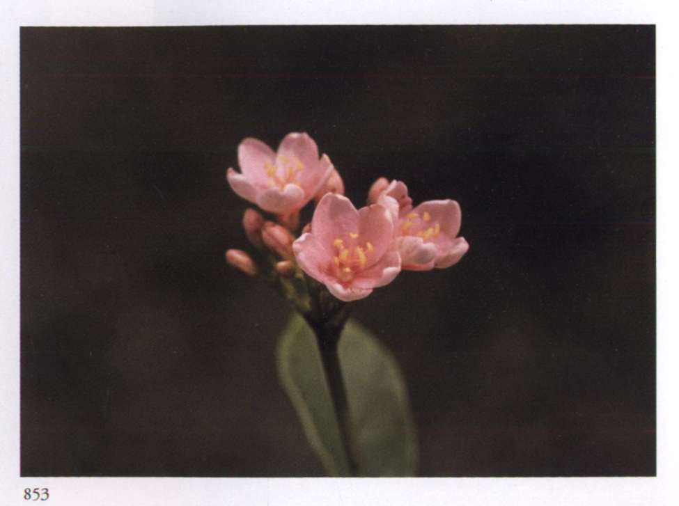 862 Joy in fairyland Light, smiling, effortless, it invites us to share its joy. Kleinhovia hospita L. Sterculiaceae Small delicate fragrant pale pink flower with five narrow pointed petals and a central stamenal column with a yellow spot; borne in airy terminal cymes. A medium to large tree with small inflated pear-shaped fruits.