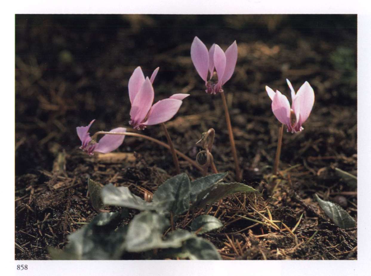 858 Scented marvel One of the innumerable gifts of Nature. Cyclamen purpurascens Mill. Primulaceae Persian violet, Alpine violet, Sowbread Small to medium-sized very fragrant rose pink to magenta flower with a crimson basal spot and five petals that turn back and upwards from the base to resemble shooting stars; borne on scapes. A tuberous herb with cordate to reniform leaves.