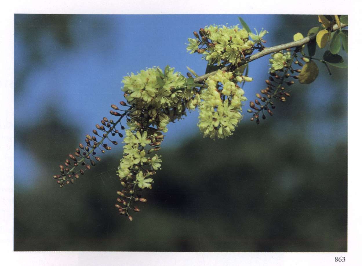 863 Fairy freshness Charming, it refreshes the eyes. Haematoxylum campechianum L. Leguminosae (subfamily Caesalpinioideae) Logwood, Campeachy, Bloodwood tree Small fragrant light yellow star-shaped flowers with numerous soft exserted stamens; borne in dense racemes along the branches. A shrub or small tree with irregularly arranged branches and with occasional spines.