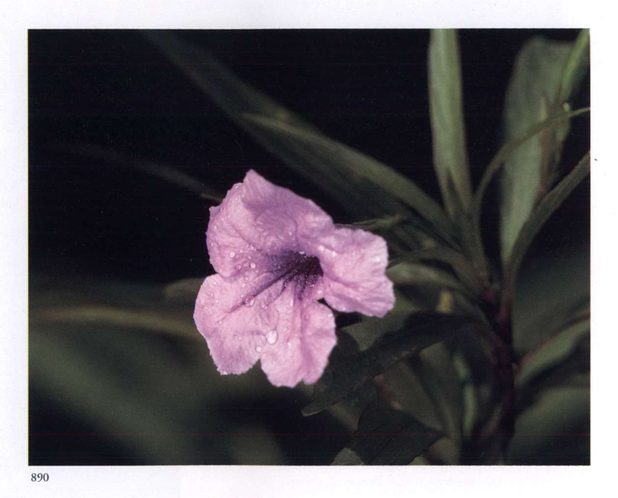 888 Krishna's light in the physical mind The physical mind loses all rigidity and becomes supple and charming. Ruellia lorentziana Griseb. Acanthaceae Medium-sized pale lavender salverform flower with a flattened corolla tube, a violet throat and a limb divided into five somewhat crinkled lobes; borne in few-flowered axillary cymes or terminal panicles. A perennial herb with long pendant flexuous branches.