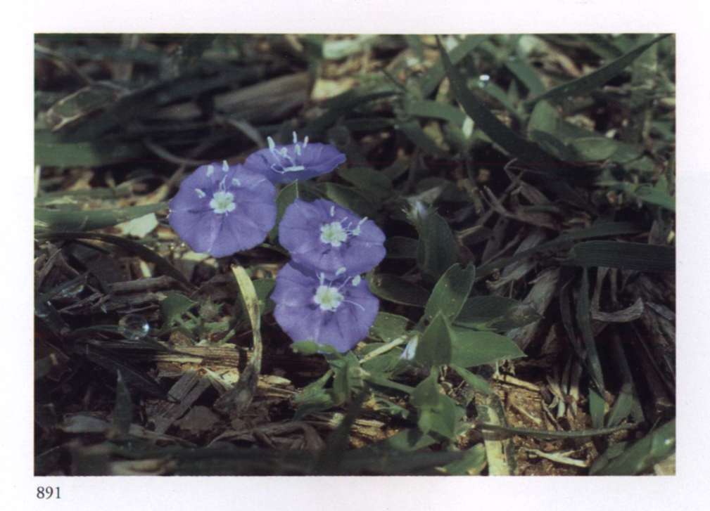 891 First sign of Krishna's light in Matter It is the indication of the coming transformation. Evolvulus alsinoides L. Convolvulaceae Tiny sky blue saucer-shaped flower with a white centre and anthers; borne singly or in few-flowered clusters. A prostrate spreading perennial countryside herb.