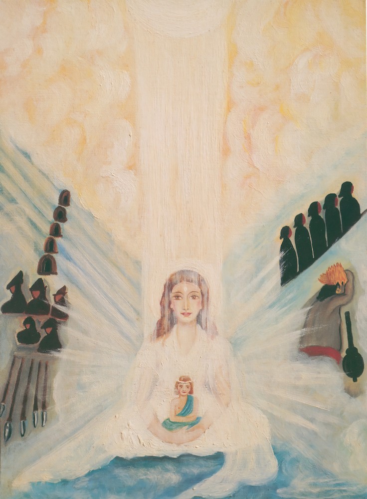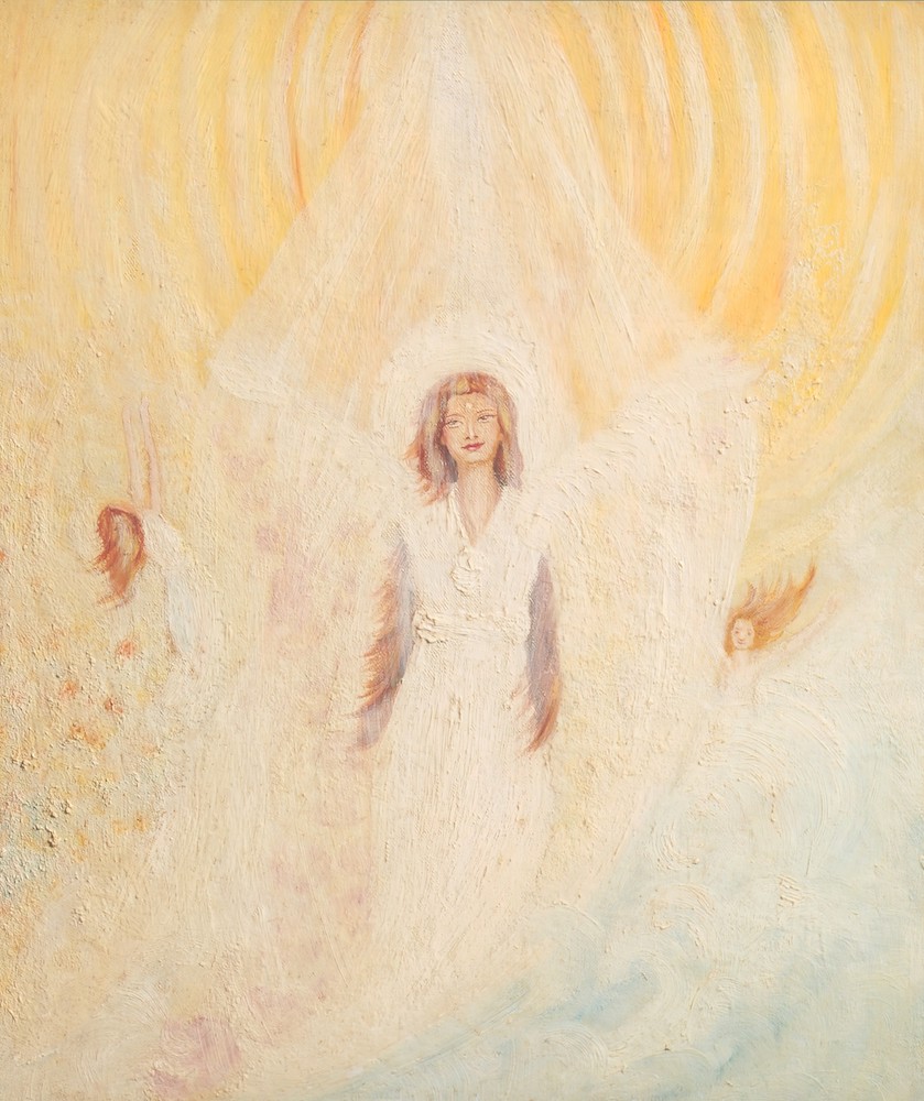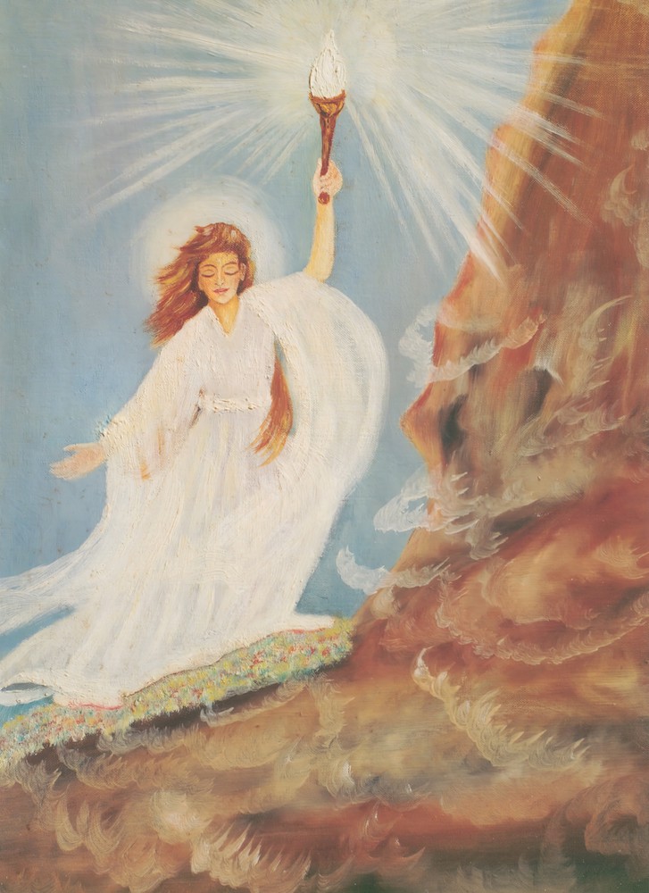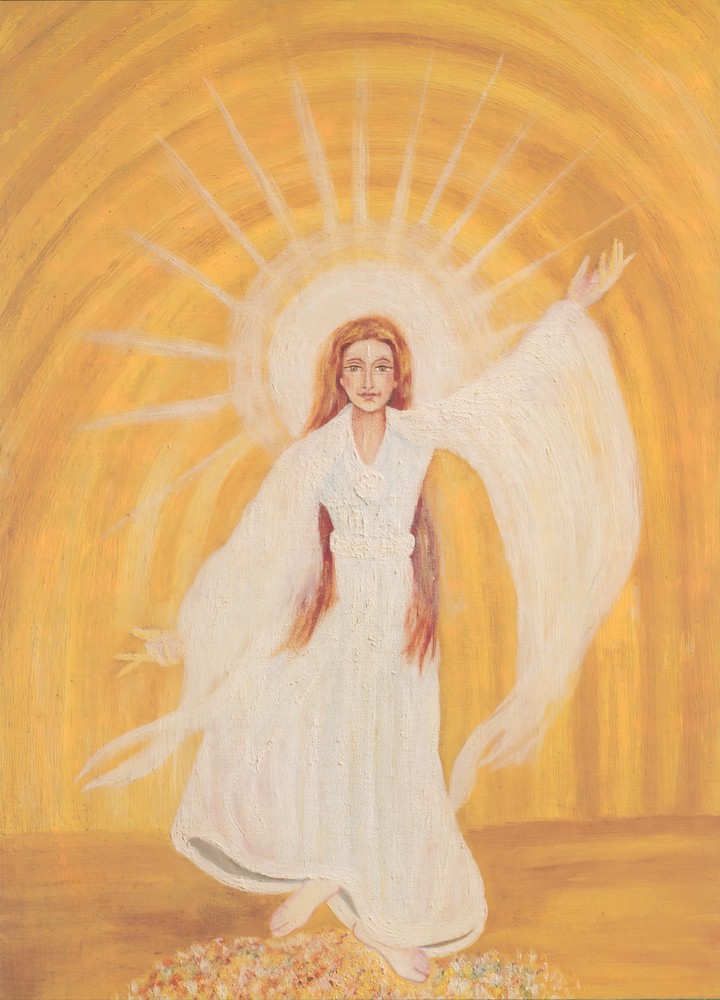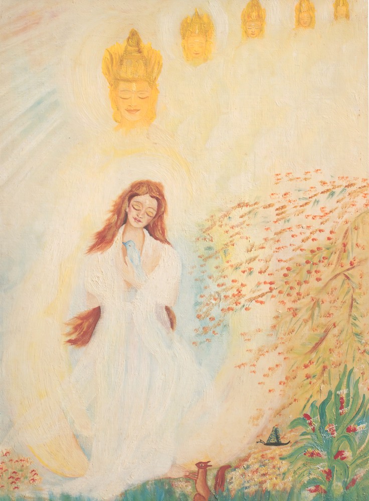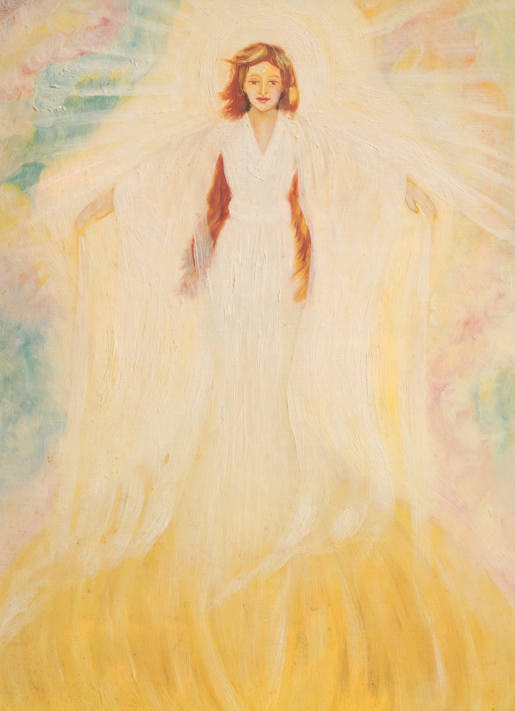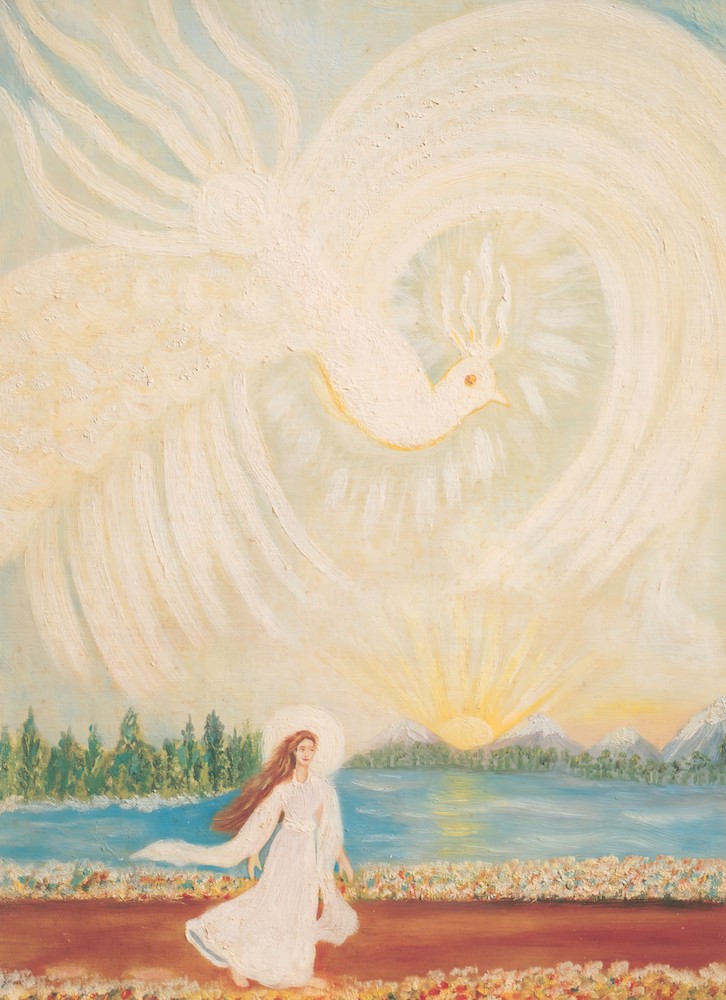 Almost they saw who lived within her light Her playmate in the sempiternal spheres Descended from its unattainable realms In her attracting advent’s luminous wake, The white-fire dragon-bird of endless bliss Drifting with burning wings above her days: Heaven’s tranquil shield guarded the missioned child. ||4.5||
