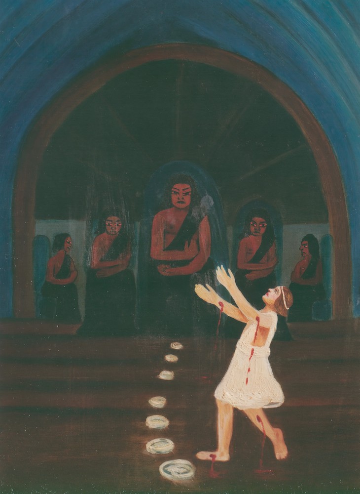 A grey tribunal of the Ignorance, An Inquisition of the priests of Night In judgment sit on the adventurer soul, And the dual tables and the Karmic norm Restrain the Titan in us and the God: Pain with its lash, joy with its silver bribe Guard the Wheel’s circling immobility. ||4.23||