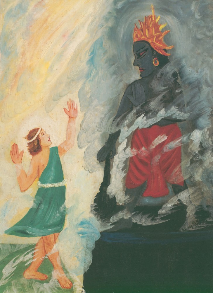 All in her pointed to a nobler kind. ||3.30|| Near to earth’s wideness, intimate with heaven, Exalted and swift her young large-visioned spirit Voyaging through worlds of splendour and of calm Overflew the ways of Thought to unborn things. ||3.31|| Ardent was her self-poised unstumbling will; Her mind, a sea of white sincerity, Passionate in flow, had not one turbid wave. ||3.32||
