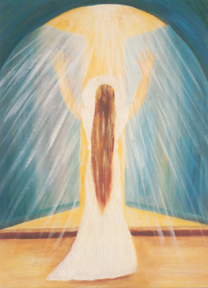As in a mystic and dynamic dance A priestess of immaculate ecstasies Inspired and ruled from Truth’s revealing vault Moves in some prophet cavern of the gods, A heart of silence in the hands of joy Inhabited with rich creative beats A body like a parable of dawn That seemed a niche for veiled divinity Or golden temple door to things beyond. ||3.33||