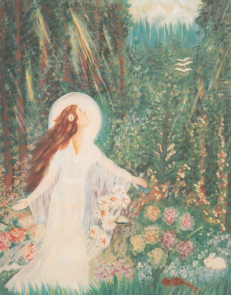 Around her were the austere sky-pointing hills, And the green murmurous broad deep-thoughted woods Muttered incessantly their muffled spell. ||3.20|| A dense magnificent coloured self-wrapped life Draped in the leaves’ vivid emerald monotone And set with chequered sunbeams and blithe flowers Immured her destiny’s secluded scene. ||3.21|| There had she grown to the stature of her spirit: ||3.22||