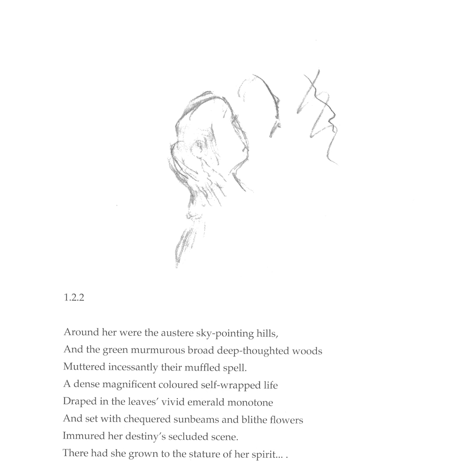 And the mighty wideness of the primitive earth And the brooding multitude of patient trees And the musing sapphire leisure of the sky And the solemn weight of the slowly passing months Had left in her deep room for thought and God. ||3.24|| There was her drama’s radiant prologue lived. ||3.25||