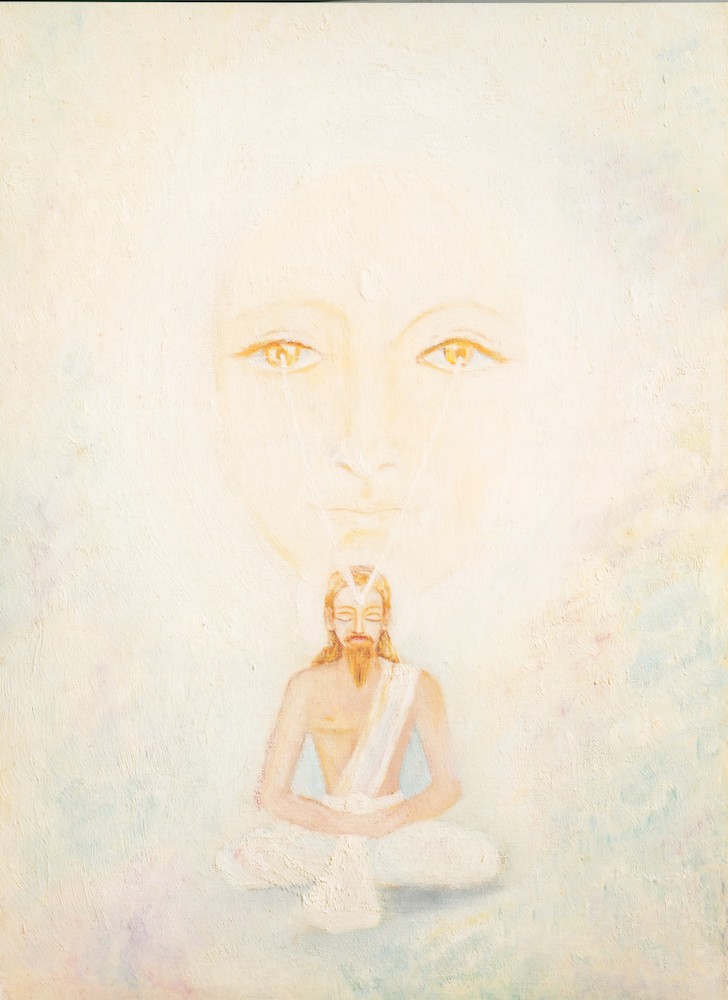He sat in secret chambers looking out Into the luminous countries of the unborn Where all things dreamed by the mind are seen and true...||6.13|| He lived in the mystic space where thought is born And will is nursed by an ethereal Power And fed on the white milk of the Eternal’s strengths Till it grows into the likeness of a god. ||6.15||