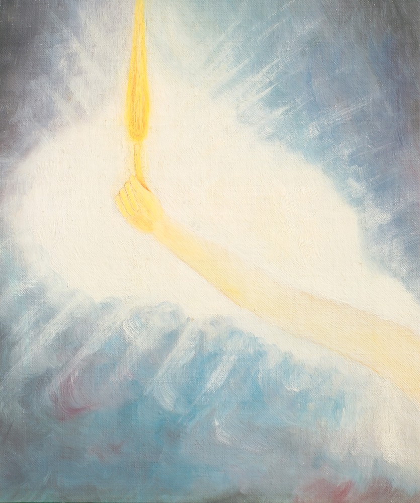 A great nude arm of splendour suddenly rose; It rent the gauze opaque of Nescience: Her lifted finger’s keen unthinkable tip Bared with a stab of flame the closed Beyond. ||8.7||