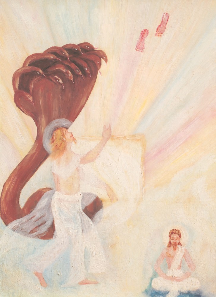 A Seer was born, a shining Guest of Time. ||5.35|| For him mind’s limiting firmament ceased above,... The landmarks of the little person fell, The island ego joined its continent: Overpassed was this world of rigid limiting forms: Life’s barriers opened into the Unknown. ||5.36||