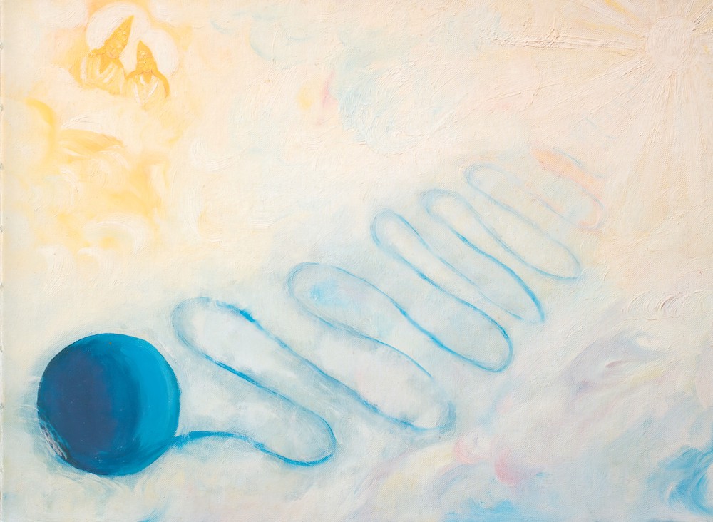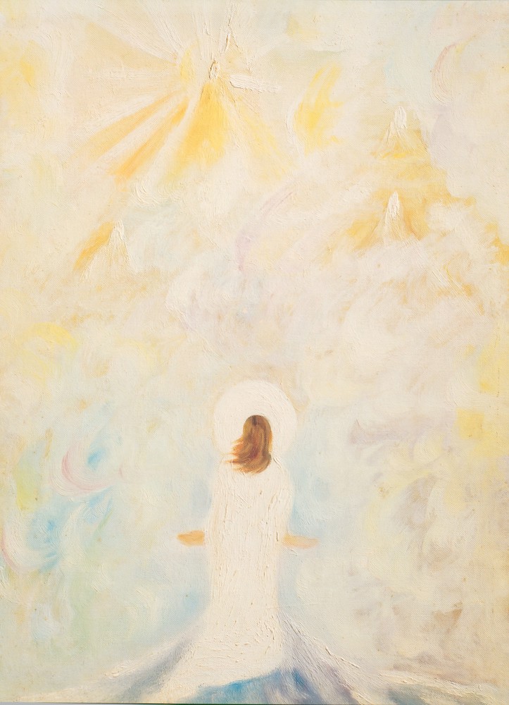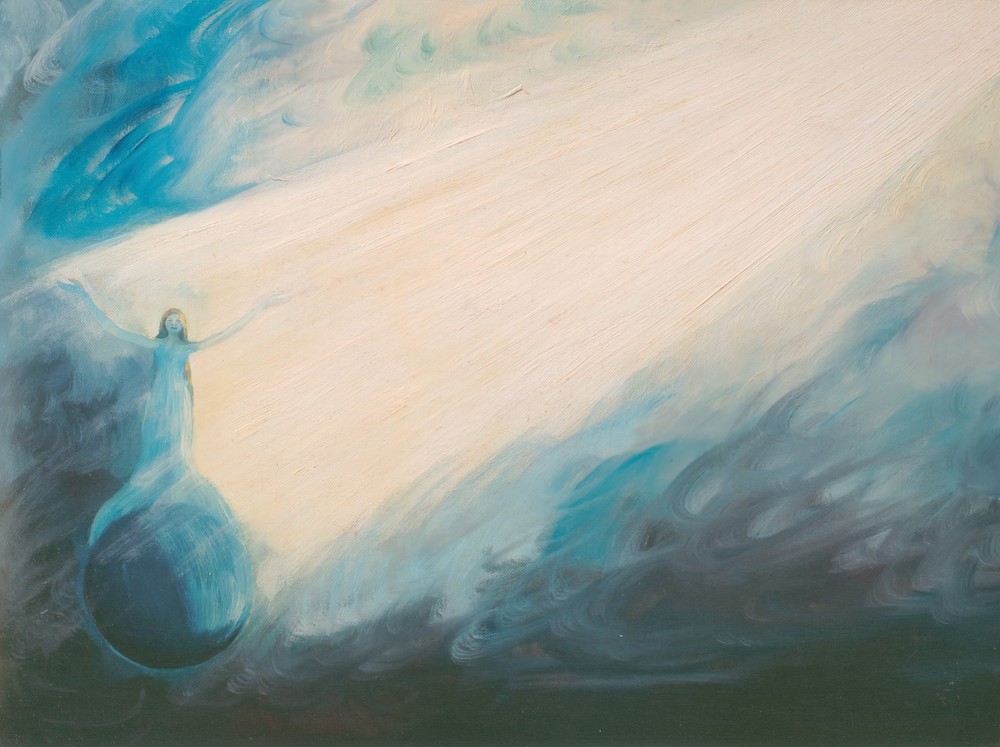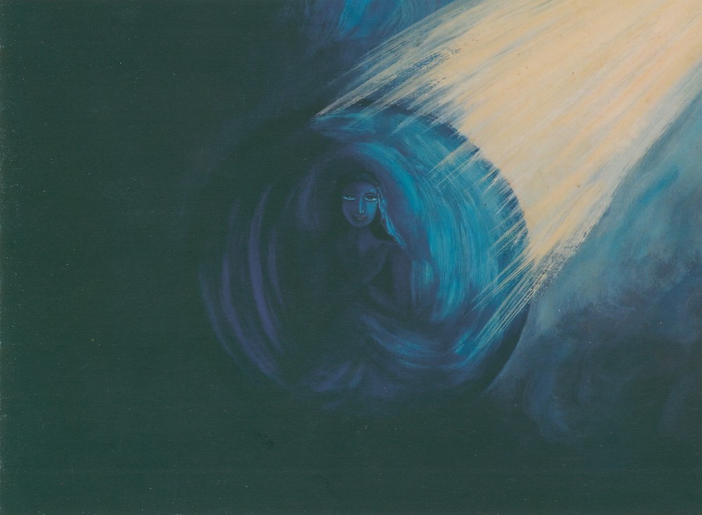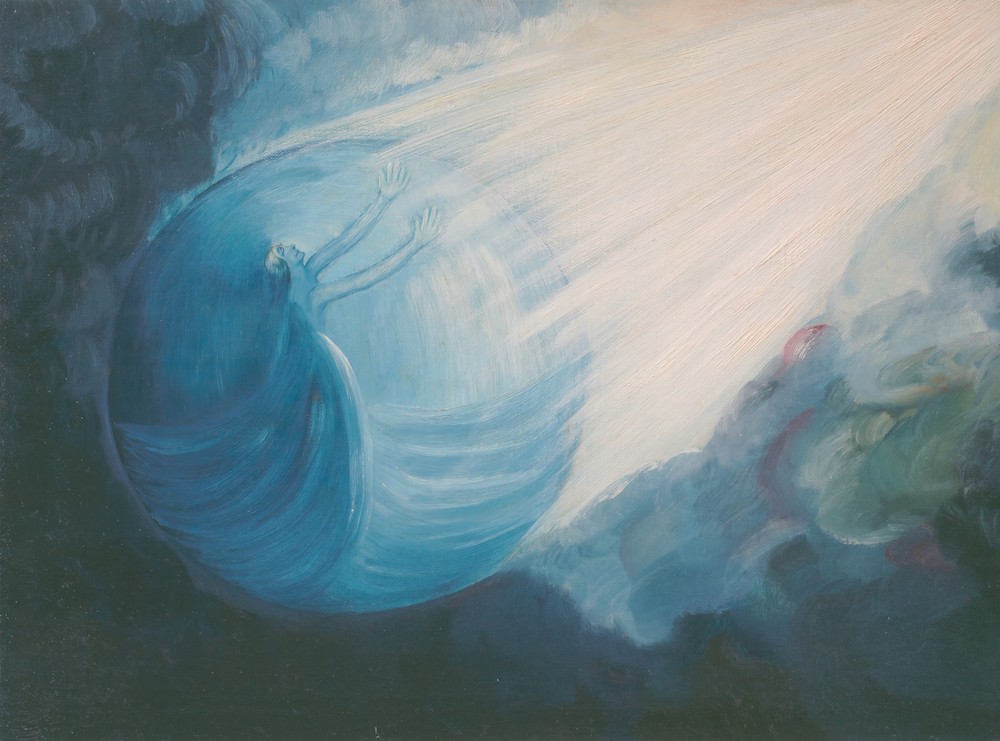Earth’s borders recede and the terrestrial air Hangs round him no longer its translucent veil. ||17.10|| The eyes of mortal body plunge their gaze Into Eyes that look upon eternity. ||17.11||