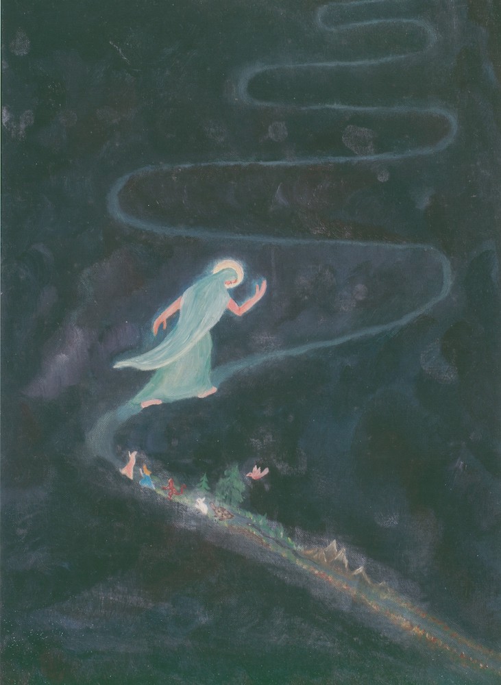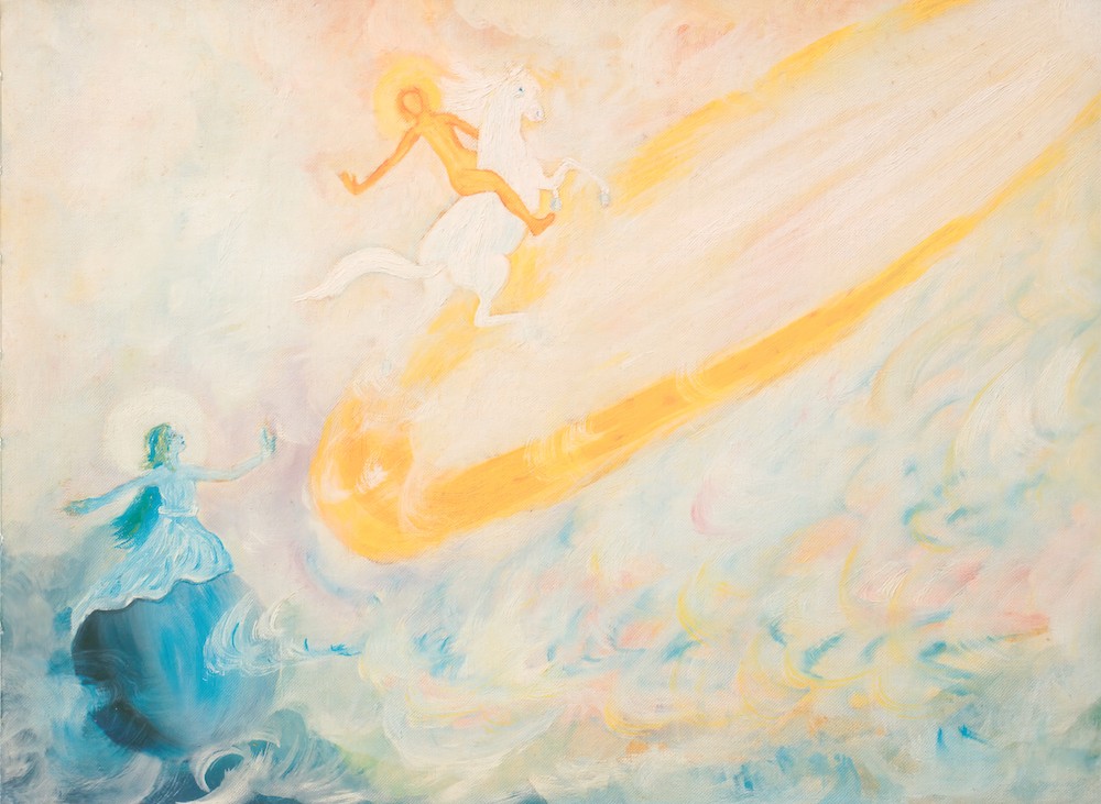 A vision meets her of supernal Powers That draw her as if mighty kinsmen lost Approaching with estranged great luminous gaze. ||11.17|| Then is she moved to all that she is not And stretches arms to what was never hers. ||11.18||