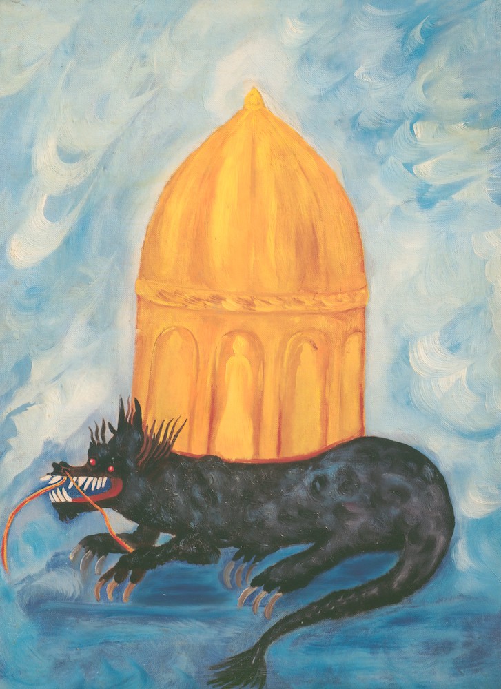 In the mystery of the deeps that God has built For his abode below the Thinker’s sight,... In this gold dome on a black dragon base, The conscious Force that acts in Nature’s breast, A dark-robed labourer in the cosmic scheme Carrying clay images of unborn gods,... Absolves from hour to hour her secret charge. ||12.33||