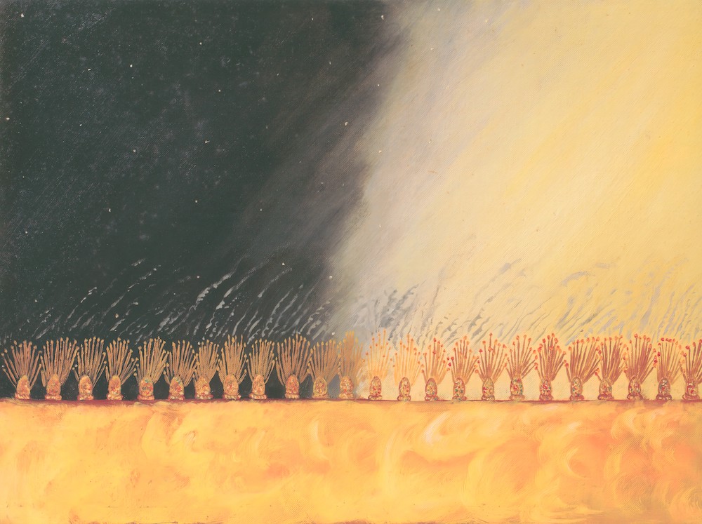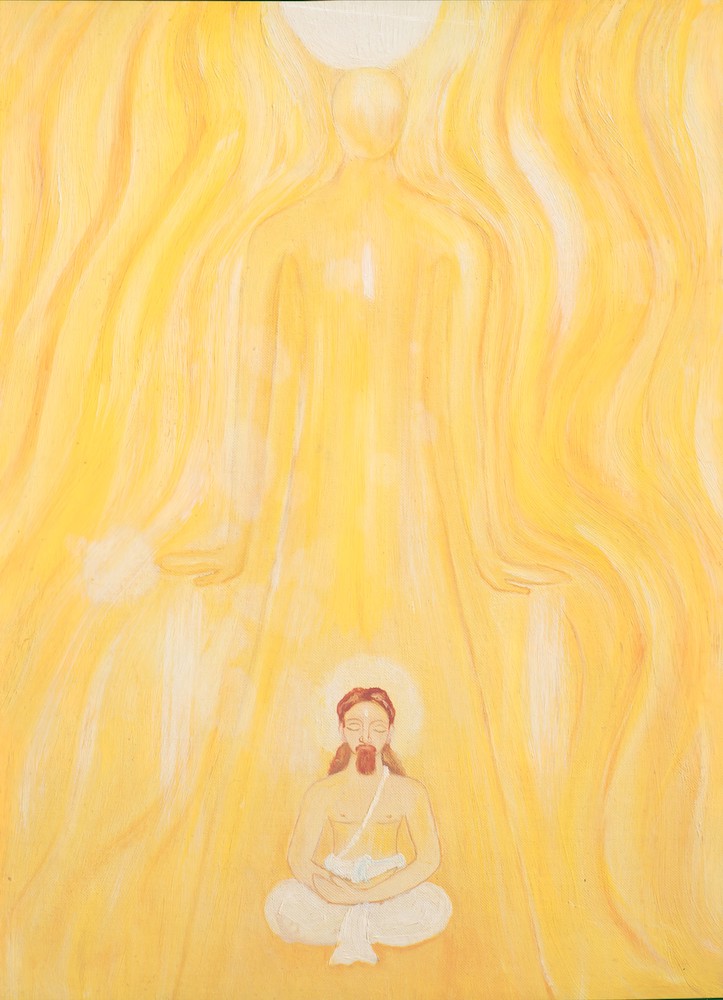In the wide signless ether of the Self, In the unchanging Silence white and nude, Aloof, resplendent like gold dazzling suns Veiled by the Ray no mortal eye can bear, The Spirit’s free and absolute potencies Burn in the solitude of the thoughts of God. ||12.10||