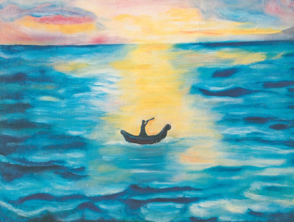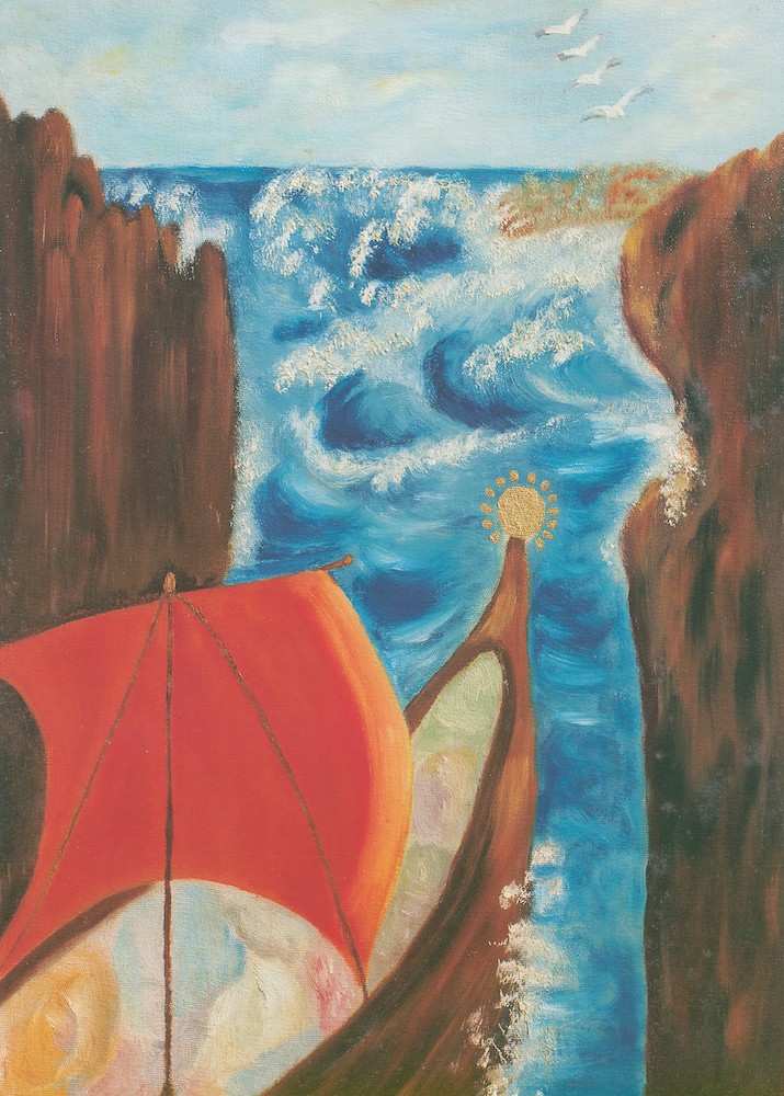 A sailor on the Inconscient’s fathomless sea, He voyages through a starry world of thought On Matter’s deck to a spiritual sun. ||17.17|| Across the noise and multitudinous cry, Across the rapt unknowable silences, Through a strange mid-world under supernal skies, Beyond earth’s longitudes and latitudes, His goal is fixed outside all present maps. ||17.18||