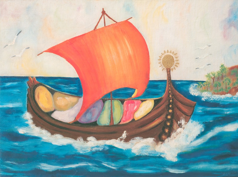 On a commissioned keel his merchant hull Serves the world’s commerce in the riches of Time Severing the foam of a great land-locked sea To reach unknown harbour lights in distant climes And open markets for life’s opulent arts, Rich bales, carved statuettes, hued canvases, And jewelled toys brought for an infant’s play ||17.7||