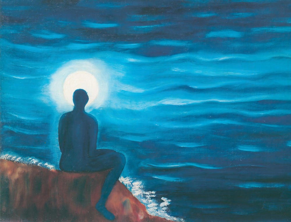 In the vessel of an earthly embodiment Over the narrow rails of limiting sense He looks out on the magic waves of Time Where mind like a moon illumines the world’s dark. ||17.15|| There is limned ever retreating from the eyes, As if in a tenuous misty dream-light drawn, The outline of a dim mysterious shore. ||17.16||