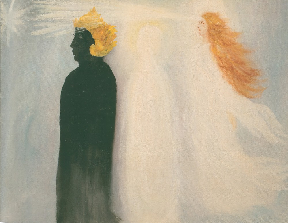 The mortal led, the god and spirit obeyed And she behind was leader of their march And they in front were followers of her will.... ||142.105|| Death walked in front of her and Satyavan, In the dark front of Death, a failing star. ||142.108|| Above was the unseen balance of his fate. ||142.109||