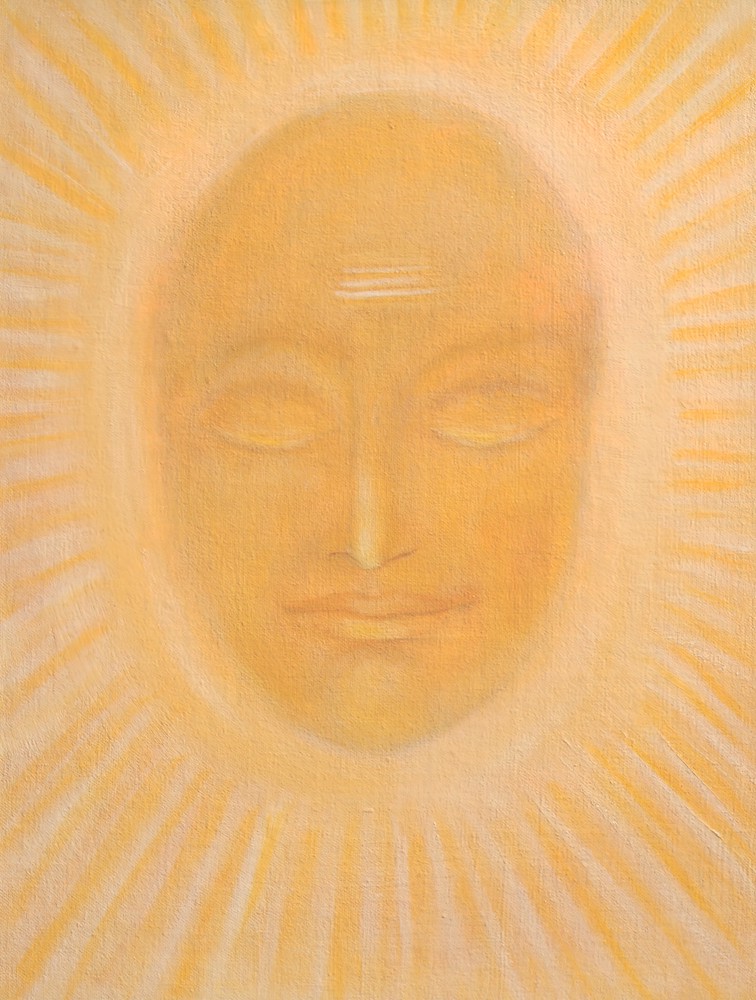 In him shadows his form the Golden Child Who in the Sun-capped Vast cradles his birth: Hiranyagarbha, author of thoughts and dream.... ||149.17|| Armed with the golden speech, the diamond eye, His is the vision and the prophecy.... ||149.18||