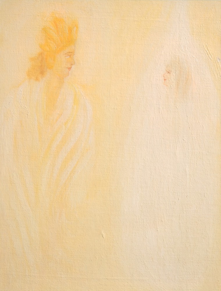 Around her some tremendous spirit lived, Mysterious flame around a melting pearl, And in the phantom of abolished Space There was a voice unheard by ears that cried: “Choose, spirit, thy supreme choice not given again... ||153.36|| Accept, O music, weariness of thy notes, O stream, wide breaking of thy channel banks....” ||153.38|| And silently the woman’s heart replied: Thy peace, O Lord, a boon within to keep Amid the roar and ruin of wild Time For the magnificent soul of man on earth. ||153.41||