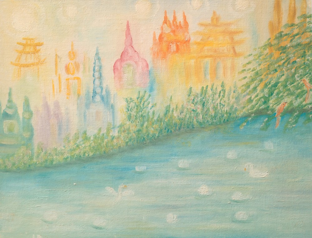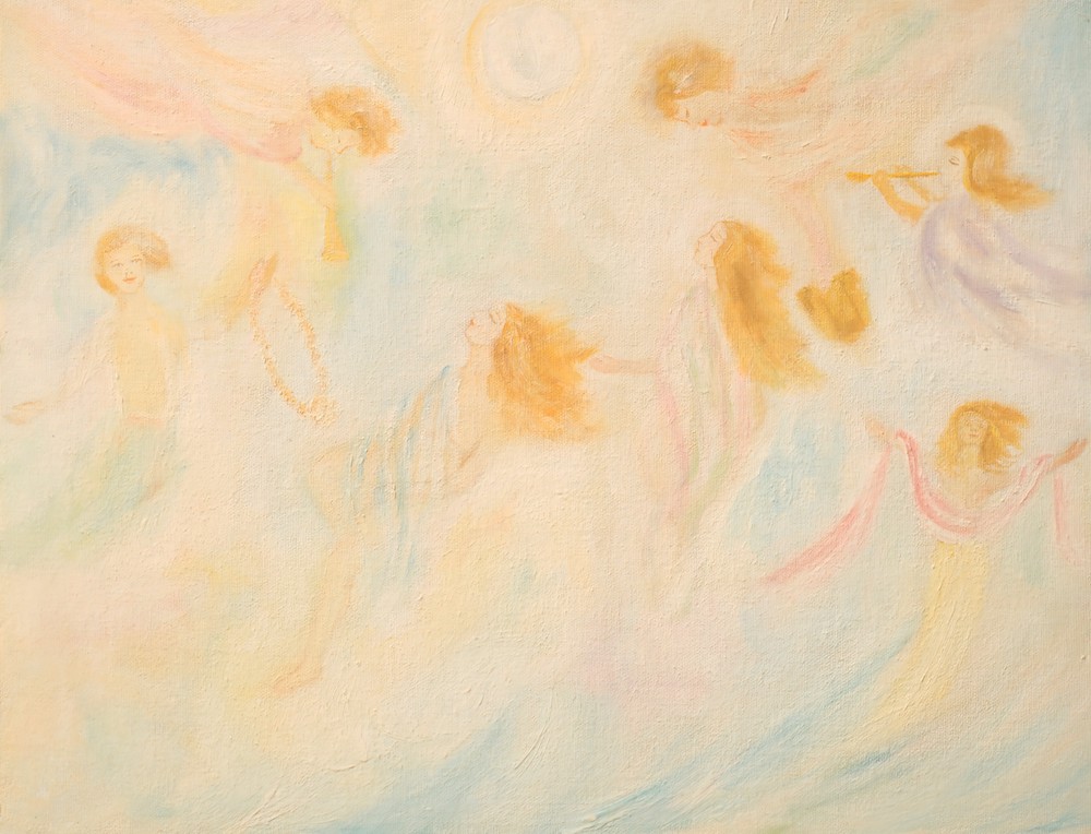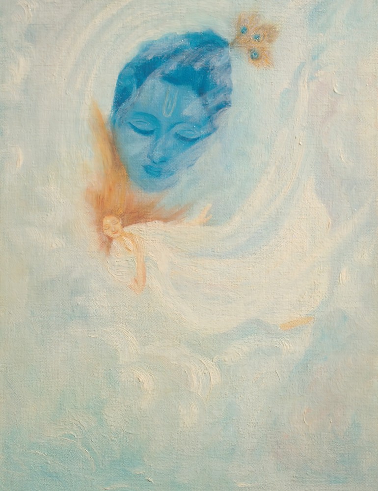 The golden-bosomed Apsara goddesses... Whirled linked in moonlit revels of the heart.... ||148.41|| Wind-haired Gundhurvas chanted to the ear The odes that shape the universal thought, The lines that tear the veil from Deity’s face, The rhythms that bring the sounds of wisdom’s sea. ||148.42||