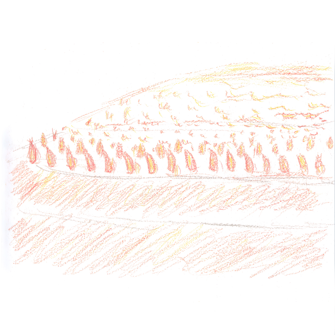 On the other side of the eternal stairs The mighty kingdoms of the deathless Flame Aspired to reach the Being’s absolutes. ||73.22|| Out of the sorrow and darkness of the world, Out of the depths where life and thought are tombed, Lonely mounts up to heaven the deathless Flame. ||73.23||