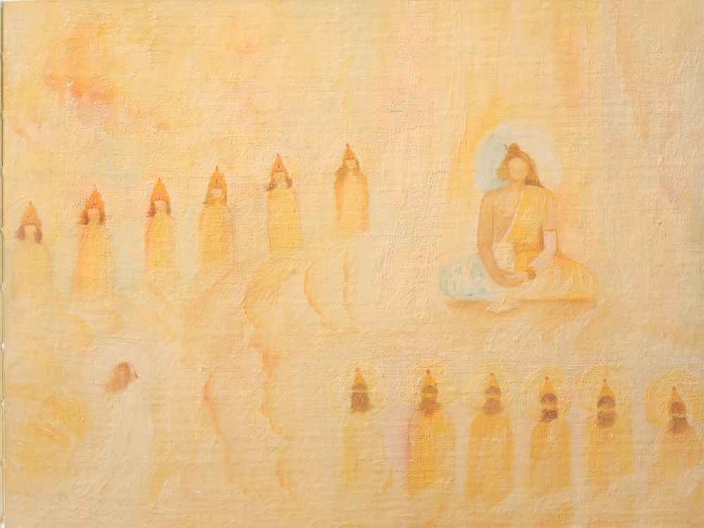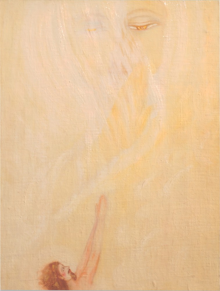 In a far-shimmering background of Mind-Space A glowing mouth was seen, a luminous shaft; A recluse-gate it seemed, musing on joy, A veiled retreat and escape to mystery. ||75.2|| As if a message from the world’s deep soul, An intimation of lurking joy That flowed out from a cup of brooding bliss, There shimmered stealing out into the Mind A mute and quivering ecstasy of light, A passion and delicacy of roseate fire. ||75.5||