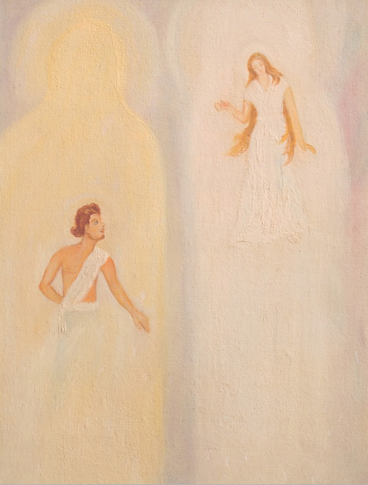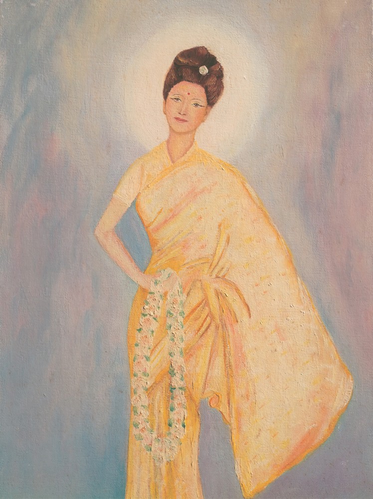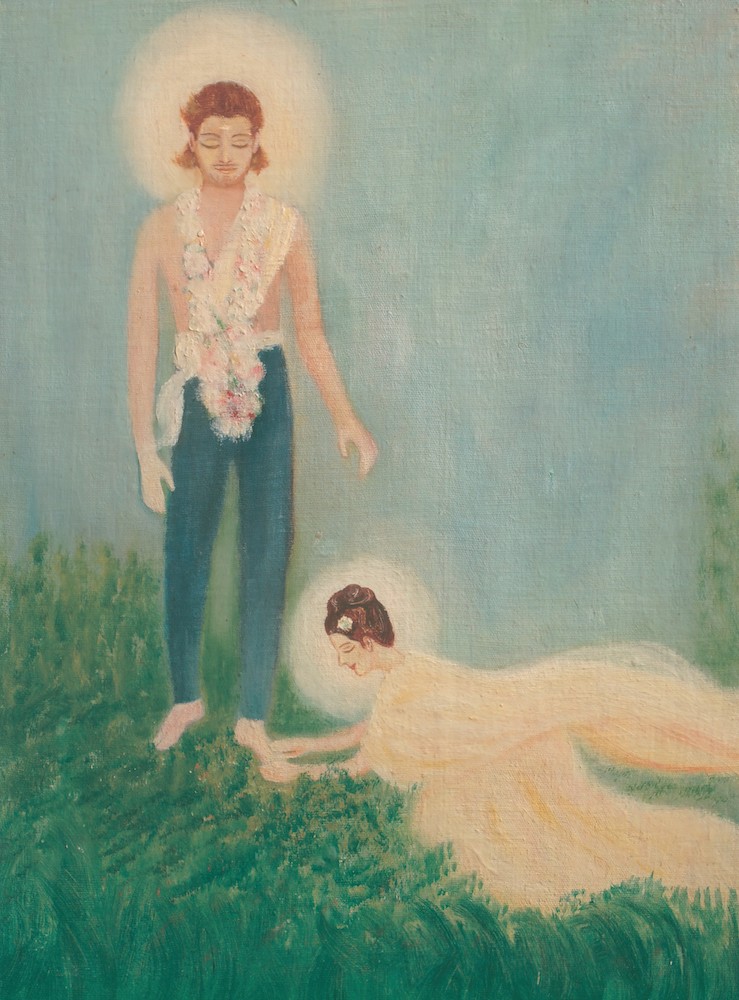 And Satyavan like a replying harp To the insistent calling of a flute Answered her questioning and let stream to her His heart in many-coloured waves of speech: O golden princess, perfect Savitri... ||103.51|| Wilt thou not make this mortal bliss thy sphere? ||103.73|| Descend, O happiness, with thy moon-gold feet, Enrich earth’s floors upon whose sleep we lie. ||103.74|| “O Satyavan, I have heard thee and I know; I know that thou and only thou art he.” ||104.2|| Then down she came from her high carven car Descending with a soft and faltering haste; ||104.3|| Her gleaming feet upon the green gold sward Scattered a memory of wandering beams And lightly pressed the unspoken desire of earth Cherished in her too brief passing by the soil. ||104.4||