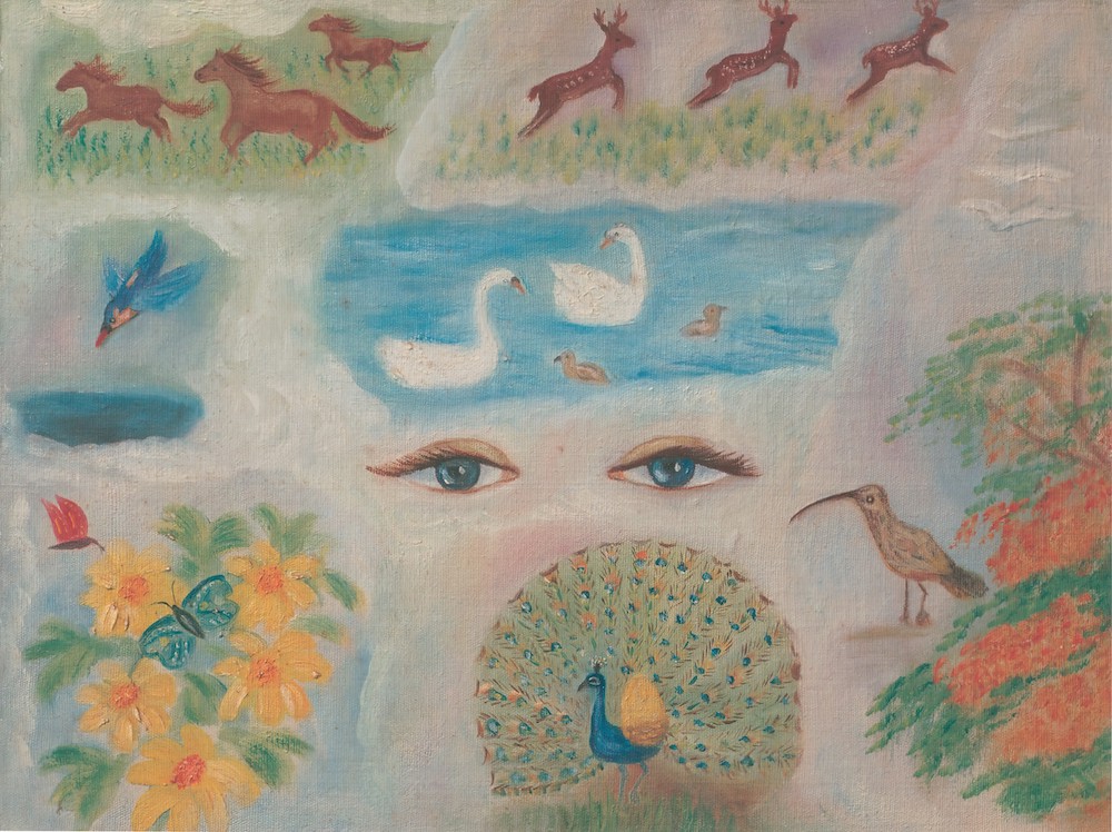 A visioned spell pursued my boyhood’s hours; ||103.32|| The neighing pride of rapid life that roams Wind-maned through our pastures, on my seeing mood Cast shapes of swiftness; trooping spotted deer Against the vesper sky became a song Of evening to the silence of the soul. ||103.35|| I caught for some eternal eye the sudden Kingfisher flashing to a darkling pool; A slow swan silvering the azure lake, A shape of magic whiteness, sailed through dream; ||103.36|| Pranked butterflies, the conscious flowers of air, The brilliant long bills in their vivid dress, The peacock scattering on the breeze his moons Painted my memory like a frescoed wall. ||103.37||