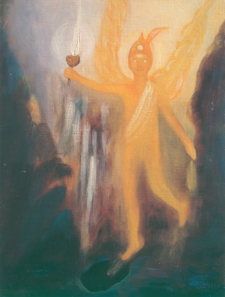Haste not towards Godhead on a dangerous road, Open not thy doorways to a nameless Power, Climb not to Godhead by the Titan’s road. ||110.4|| Against the Law he pits his single will, Across its way he throws his pride of might. ||110.5|| Heavenward he clambers on a stair of storms Aspiring to live near the deathless sun. ||110.6||